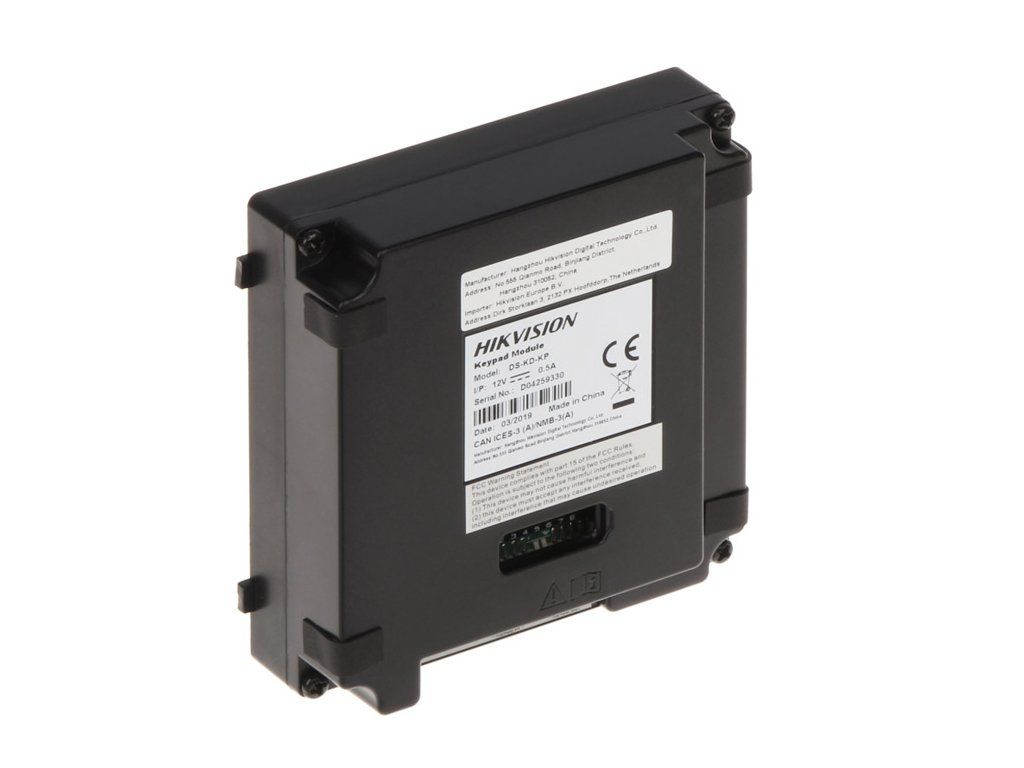 DS-KD-KP značky Hikvision je modul klávesnice pro videovrátník, který může sloužit jako kódový zámek. Zařízení má zabudované LED podsvícení, které usnadňuje výběr čísla a volání místnosti. Celý modul je uzavřen v stylovém, odolném krytu, vyrobeném v třídě těsnosti IP65 a v třídě mechanické odolnosti proti nárazům IK7.