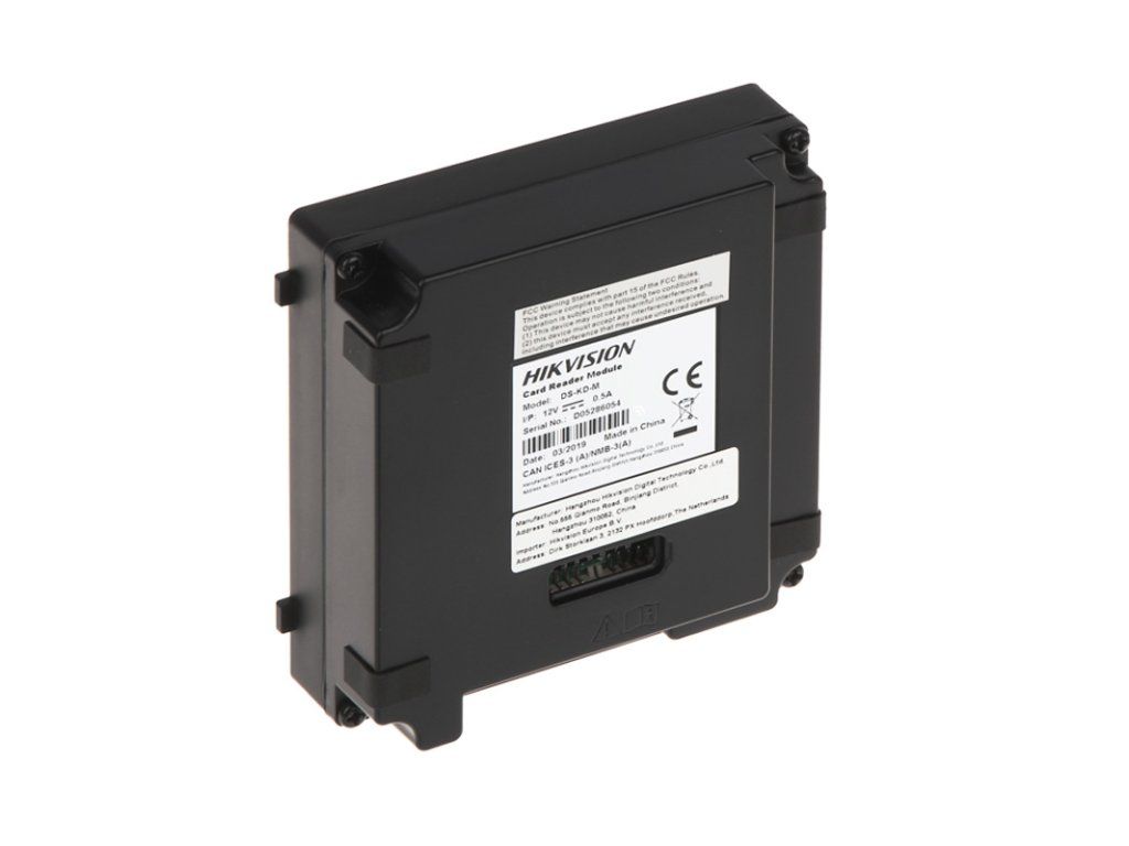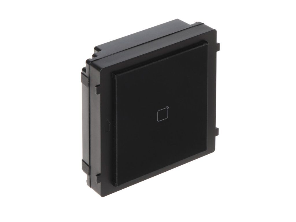 DS-KD-M je bezkontaktní čtečkou karet podle standardu Mifare 13,56 MHz, určenou pro práci v modulovém videovrátnikovém systému značky Hikvision. Zařízení plní funkci kontroly a autorizace vstupu na území objektu prostřednictvím přidělených systémových transponderů, jako jsou karty nebo přívěsky bezdotykové. Vzhledem k integrovanému LED podsvícení, zařízení zaručuje pohodlné používání v nočních hodinách. Modul DS-KD-M je vyroben v třídě ochrany IP65, která zajišťuje spolehlivý provoz v náročných povětrnostních podmínkách.