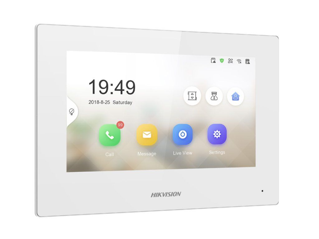Výrobce Hikvision monitor DS-KH6320-WTE1-W je vnitřní stanice videovrátníka IP, patřící do druhé generace interkomových systémů značky Hikvision. Díky použití 7palcového dotykového panelu TFT LCD s rozlišením 1024x600 pixelů, obraz je velmi dobře viditelný a plný detailů. Toto řešení umožňuje přesnou identifikaci osob stojících před Vašimi dveřmi. Dotykový displej použitý v konstrukci monitoru DS-KH6320-WTE1-W dělá ovládání zařízení mimořádně pohodlným.
