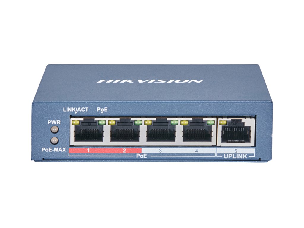 - 1x Switch PoE 4+1 pro napájení a připojení systému do sítě - DS-3E0105P-E