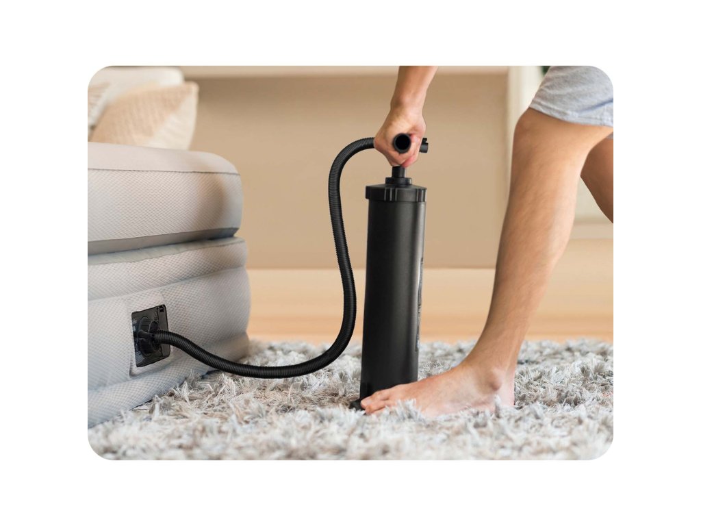 Konec únavného nafukování a vyfukování matrací metodou ústa - náustek, které trvá celé hodiny. Díky nožní pumpě značky Intex s 3 vyměnitelnými koncovkami nafouknete nafukovací matraci, člun nebo jakýkoli jiný nafukovací produkt expresně rychle. Její další výhodou je možnost pumpování vzduchu v obou směrech - při pohybu nahoru i dolů. Díky tomuto vylepšení se doba nafukování a čekání, až budou nafukovací předměty připraveny k použití, výrazně zkracuje. Ale to není konec mnoha výhod této pumpy. Má také dlouhou, pružnou hadici, která usnadňuje dosažení obtížně přístupných míst.