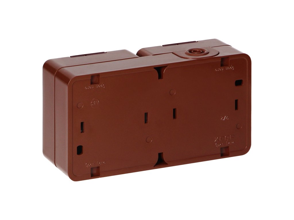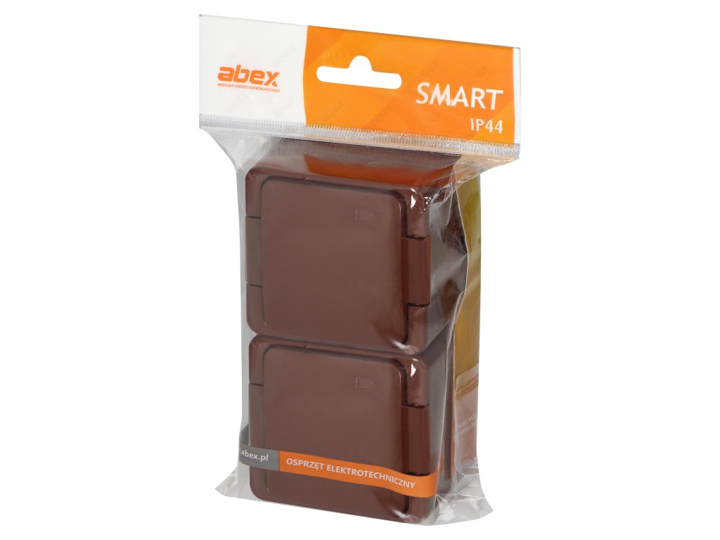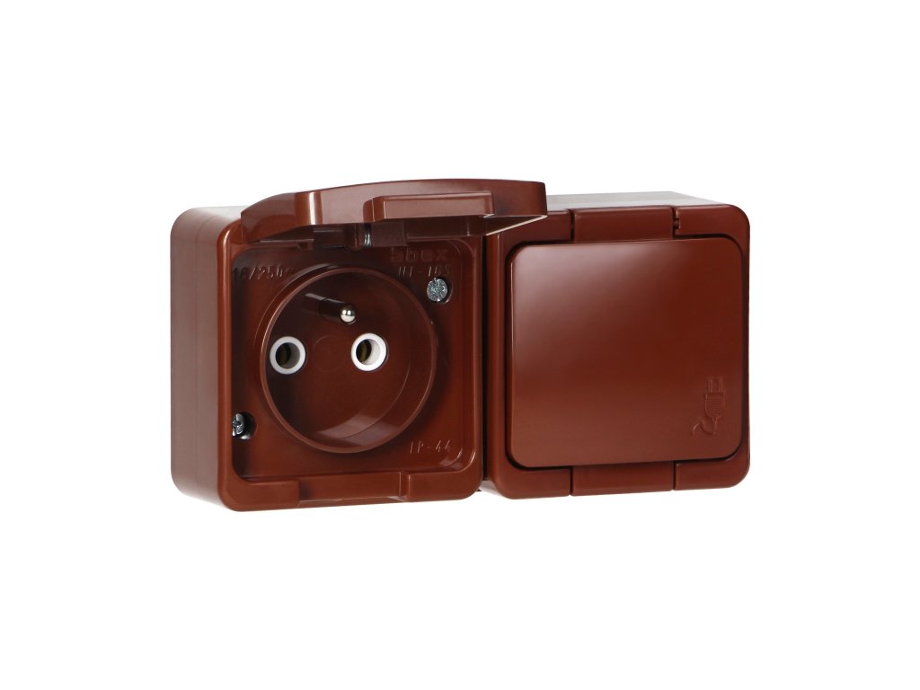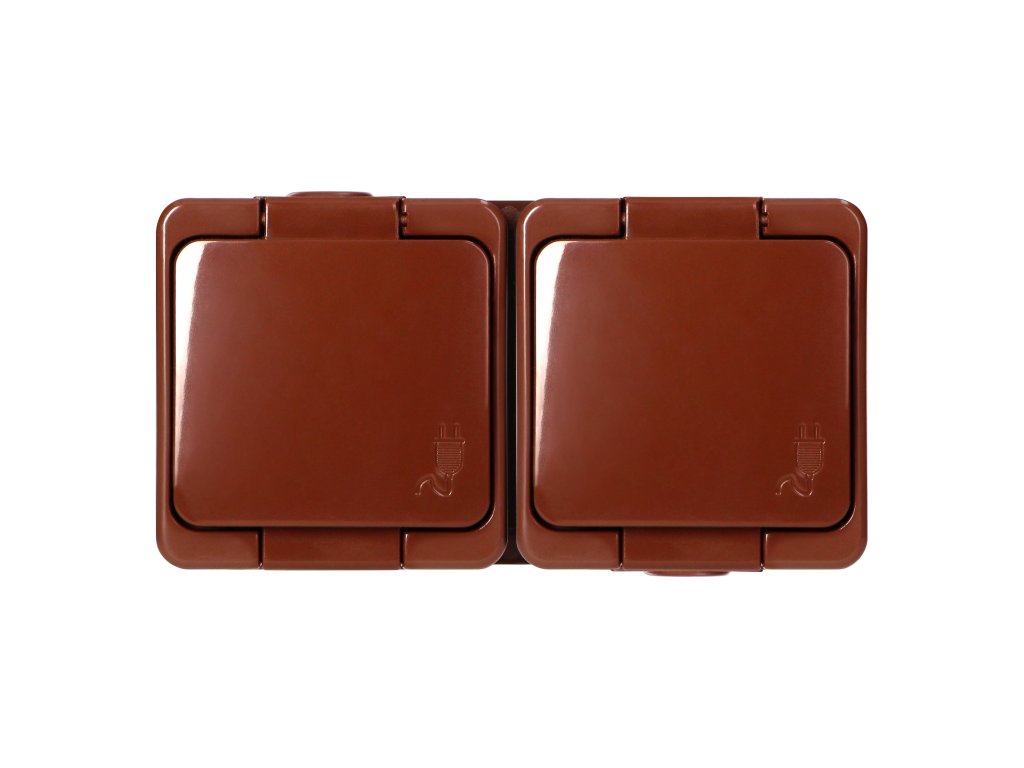 Dvojitá zásuvka na omítku 2x2P+E, s krytem, vodotěsná, IP44, SMART, hnědá