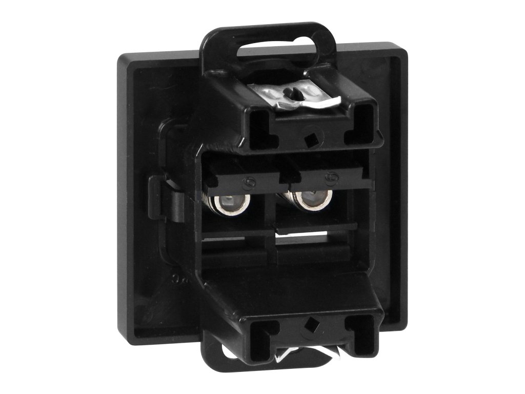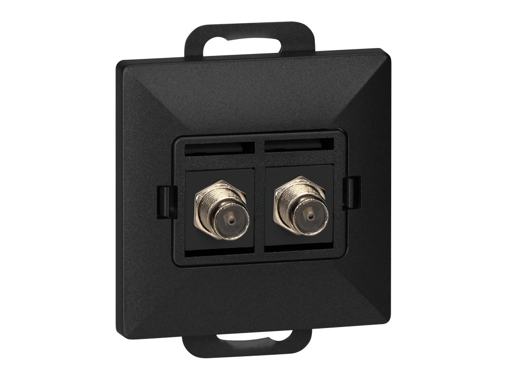 Modulární řada se symetrickým systémem rámové desky (pro 1-, 2-, 3-, 4-, 5-modulů) umožňuje montáž výrobku jak v horizontální, tak ve vertikální poloze. Moderní rychlospojovací mechanismus (dráty jsou připojeny vložením přímo do těla) zajišťuje bezpečnou a spolehlivou instalaci a odebrání drátu. Zásuvky jsou vybaveny tradičními šroubovými spojeními. Vnitřní konstrukce svorek zaručuje bezpečné spojení drátů od 0,75 mm? do 2,5 mm?. Silná a robustní montážní mřížka a vysoce kvalitní samočinně zasouvatelné prvky umožňují stabilní a bezpečnou instalaci v krabici. Speciální pružné prvky usnadňují zasazení rámu do těla.Dvojitá anténní TV zásuvka, typ F. Umožňuje připojení dvou kabelů s F-konektorem. Měla by být používána ve vnitřních prostorách (IP20).
