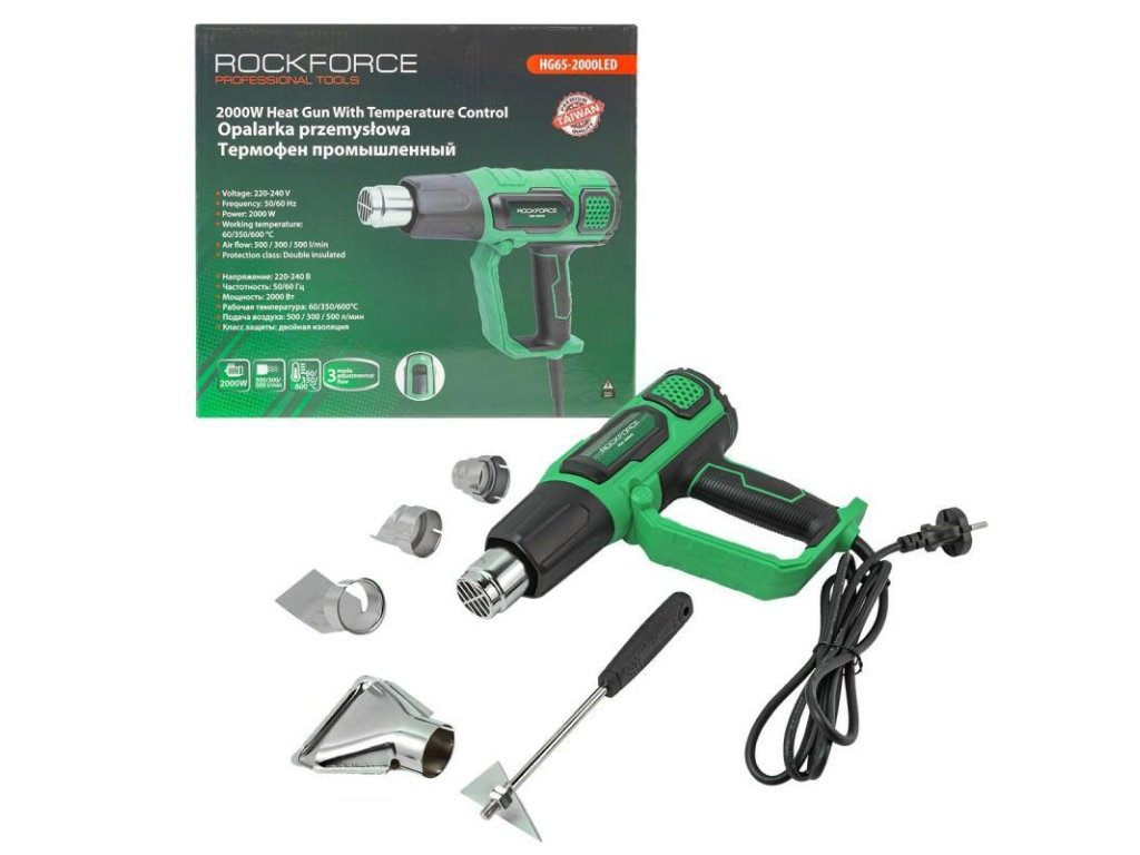 Elektrická horkovzdušná pistole 2 rychlosti 4 trysky 600C 2000W