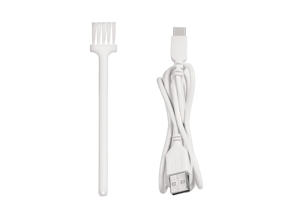 V sadě: USB kabel (93 cm), čistící kartáček, ochranný kryt