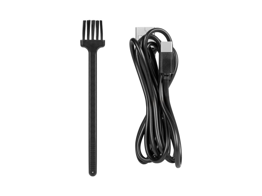 V balení: USB kabel (143 cm), čistící kartáček, ochranný kryt