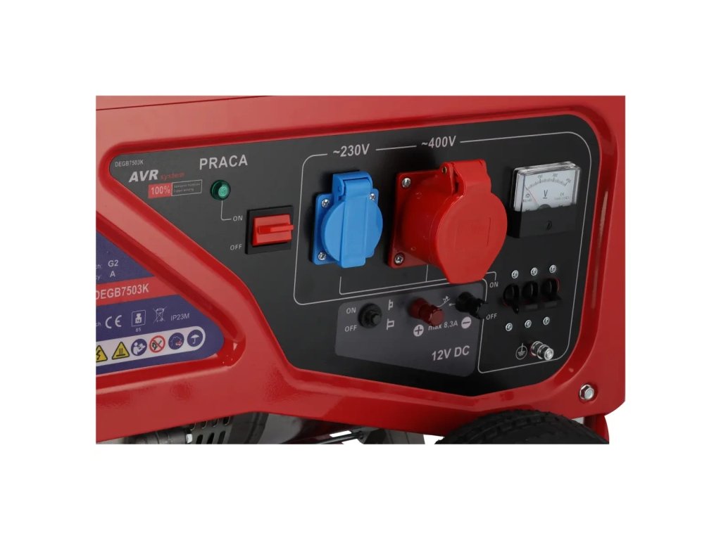 Generátorová souprava DEGB7503K s jmenovitým výkonem 6000 W slouží jako nouzové napájení v případě výpadku elektrické sítě.