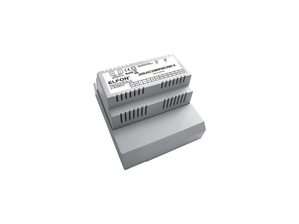EWD-10 od firmy ELFON je napájecí zdroj určený pro analogové systémy domácího telefonu. EWD-10 má skříňku typu EURO s rámečkem zakrývajícím elektrické spoje, což umožňuje bezpečné používání a pohodlnou montáž na stěnu. Díky své konstrukci může být napájecí zdroj instalován v elektrické skříni (pojistkové skříni) - DIN lišta 6 modulů.