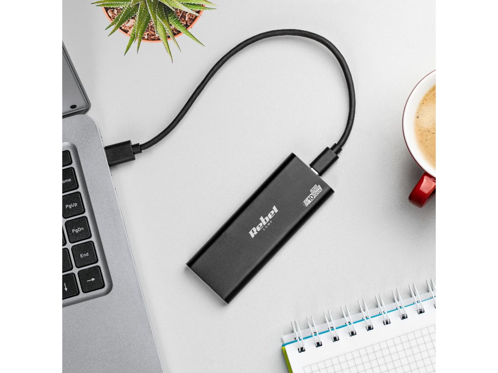 Externí pouzdro značky Rebel je kompatibilní s disky M.2 SATA - s maximální kapacitou 2 TB. Co je důležité, je velmi univerzální - podporuje SSD disky a všechny populární operační systémy, jako je Windows, iOS a Linux. Navíc použití rozhraní USB 3.1 typu C umožňuje přenos dat rychlostí až 10 Gbps.