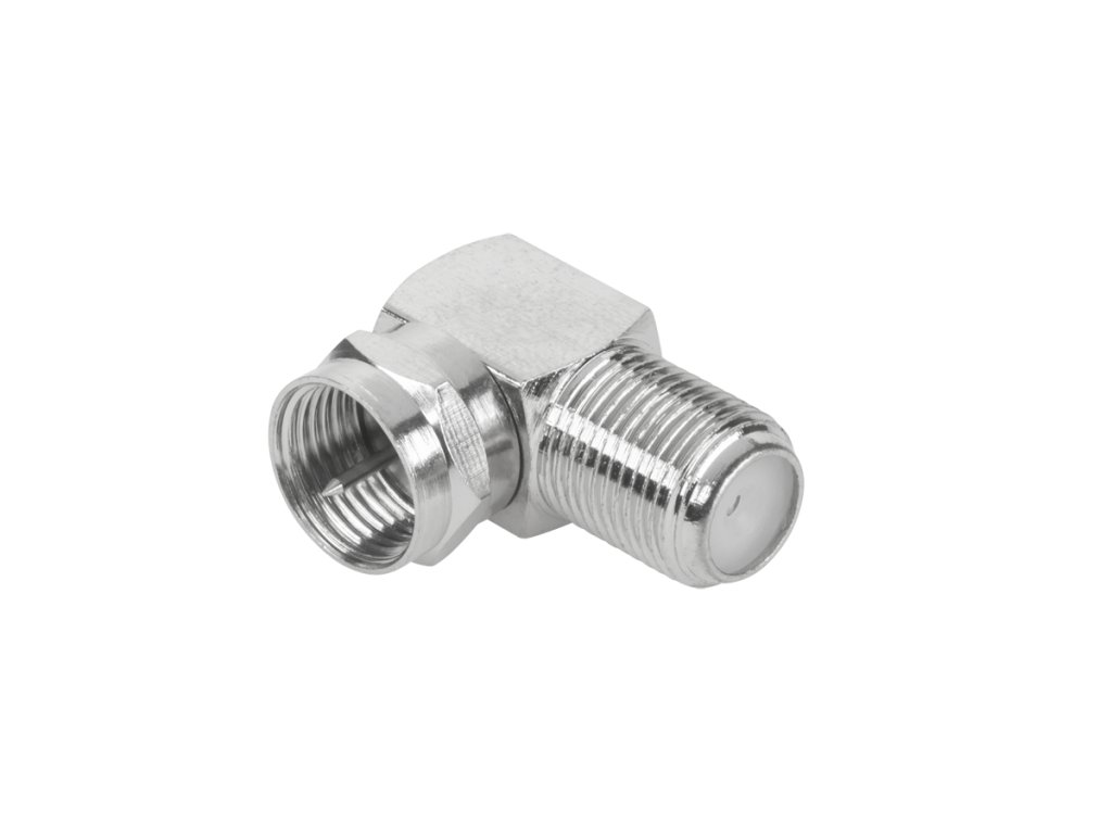 Konektor zástrčka F - zásuvka F, kov, úhlový Min. objednávka: 25 ks.Konektor zástrčka F - zásuvka F, kov, úhlový