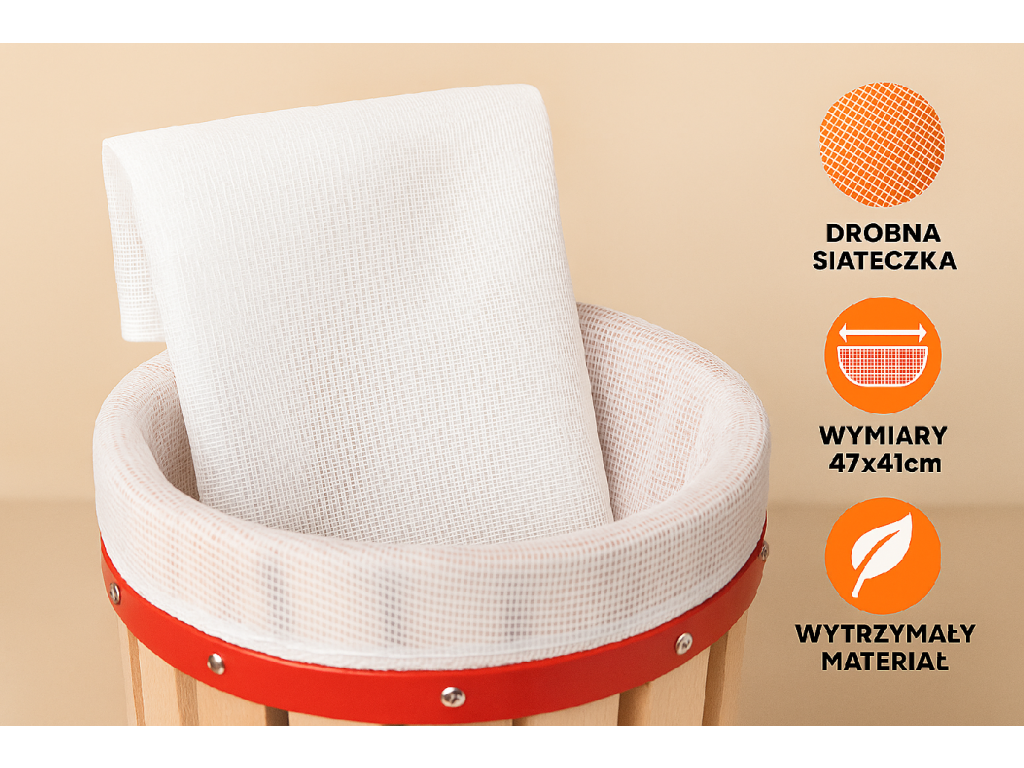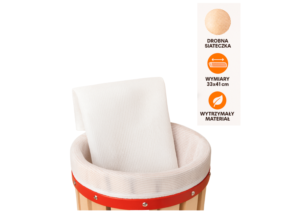 Filtr do lisu představuje vynikající příslušenství k lisu na ovoce. Účinně zadržuje uvnitř lisu značnou část ovocné drti, díky čemuž je při silnějším stlačení možné získat více čisté šťávy. Materiál, ze kterého je filtr vyroben, zaručuje trvanlivost produktu a jistotu, že neovlivní chuť vyprodukované šťávy. Filtrační sáček je určen pro lisy s objemem 12L.