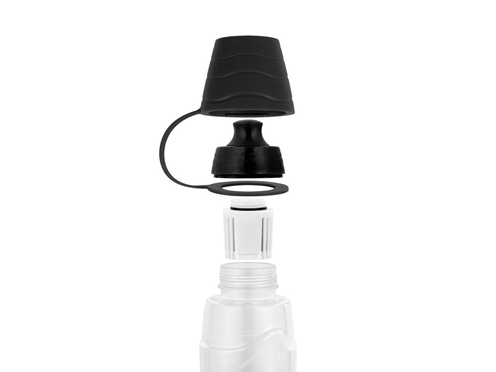 Lahev má 3stupňový filtrační systém. Sedimentační filtr zadržuje jemné materiály, jako je prach a usazeniny, filtr s aktivním uhlím velmi účinně adsorbuje chlor, těkavé fenolové sloučeniny a další organické nečistoty, zatímco koncový filtr snižuje únik jemných částic z filtračních médií.