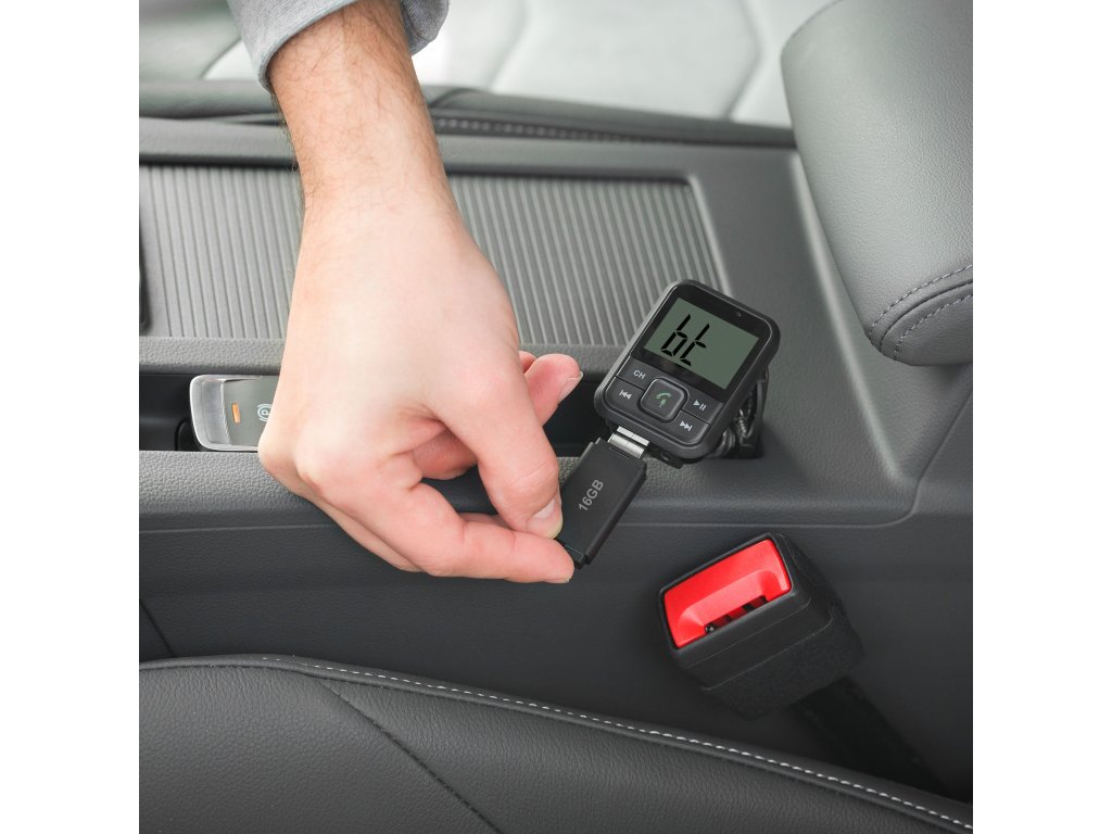 FM Bluetooth vysílač může také plnit funkci handsfree sady. Volné telefonické hovory během cesty zajišťuje vestavěný mikrofon.