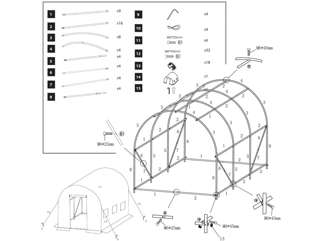 - Dĺžka napínacích kolíkov: 14,5 x 2,5 cm
