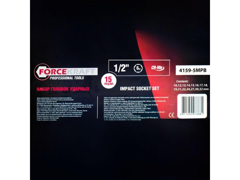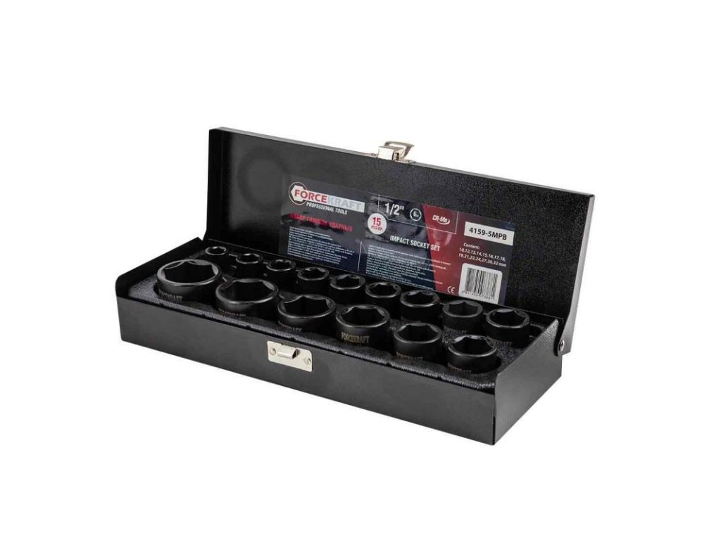 FORCEKRAFT Sada nárazových hlavic 1/2" 15 DÍLNÁ 6-hran (10-32mm)