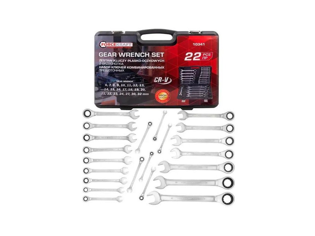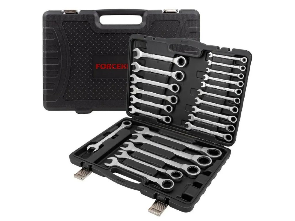 Profesionální sada plochých očkových klíčů s ráčnou Forcekraft je ideálním řešením pro mechaniky, opraváře a náročné domácí kutily, kteří kladou důraz na kvalitu, trvanlivost a pohodlí při práci. Díky kombinaci ráčny a přesné výroby z chrom-vanadiové oceli (Cr-V), je tento set vhodný jak pro autodílny, tak i při běžných opravách a montážích.