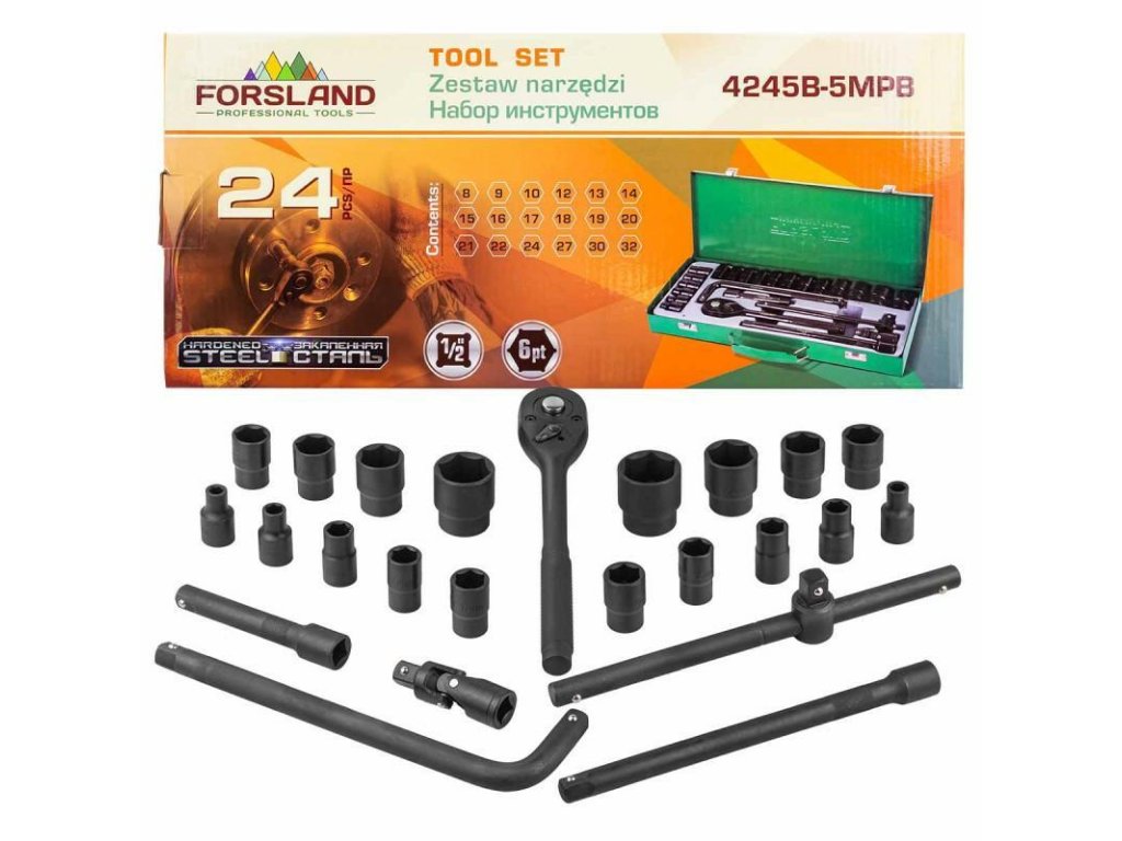 FORSLAND Sada nářadí 1/2" šestihranů 8-32mm 24 KUSŮ + KUFŘÍK