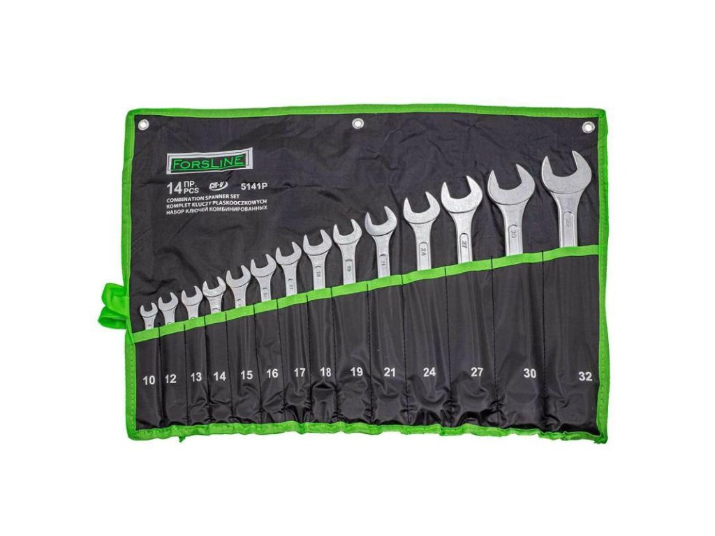 FORSLINE Velká Sada OTEVŘENÝCH a OČKOVÝCH KLÍČŮ 14 KUSŮ 10 - 32 mm Cr-V