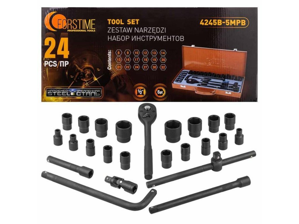 FORSTIME Sada nářadí 1/2" 6-hranová 8-32mm 24 prvků + kufřík