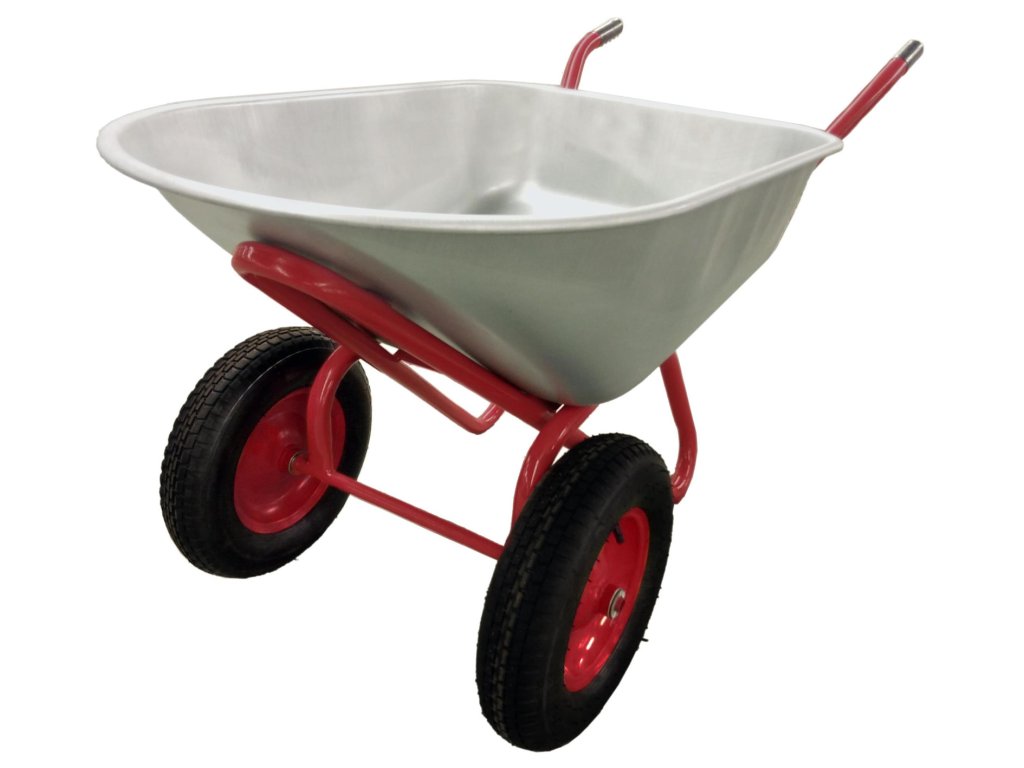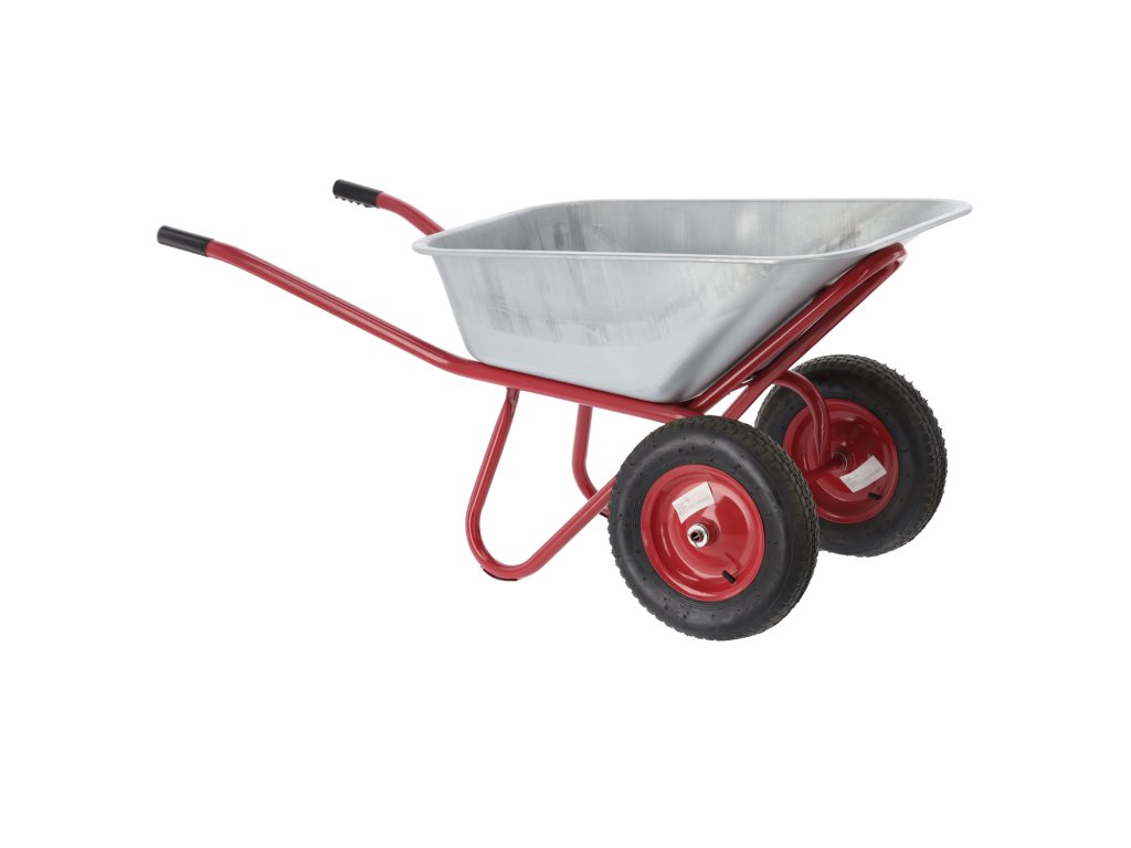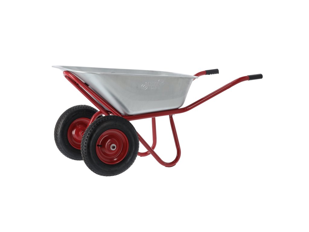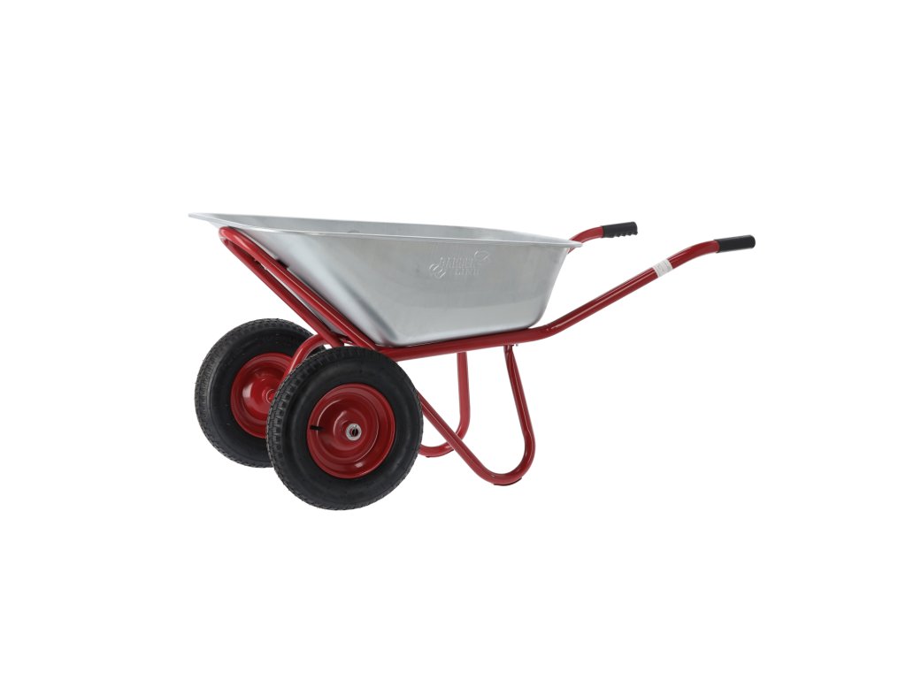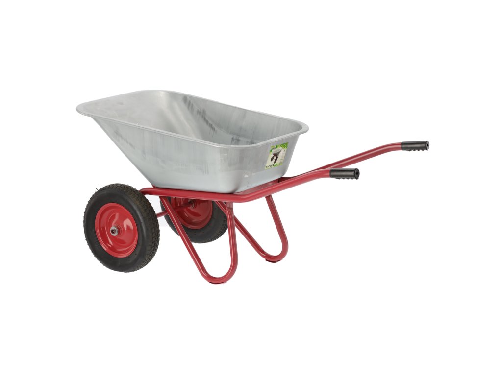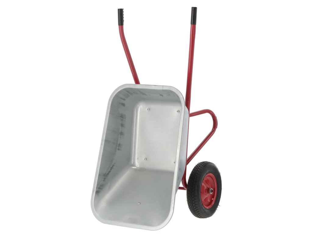 Odolný zahradní vozík, ideální na práci v zahradě a na stavbě. Vyrobený z vysoce kvalitních materiálů, vybavený ocelovou pozinkovanou vanou, lakovaným rámem, velkými gumovými koly s kovovým ráfkem a protišmykovými gumovými rukojeťmi pro bezpečnou práci.