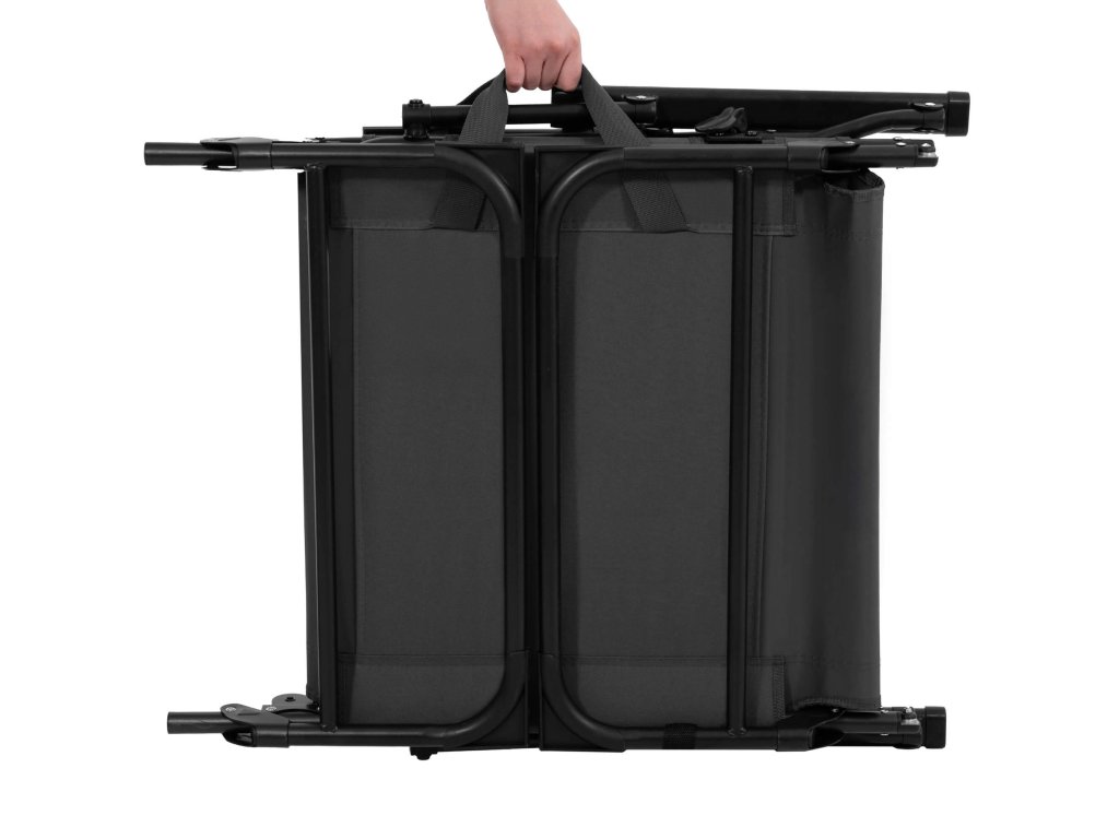 - Výrobek vybavený dvojitým držadlem pro přenášení a páskem na suchý zip pro zajištění v složené poloze.