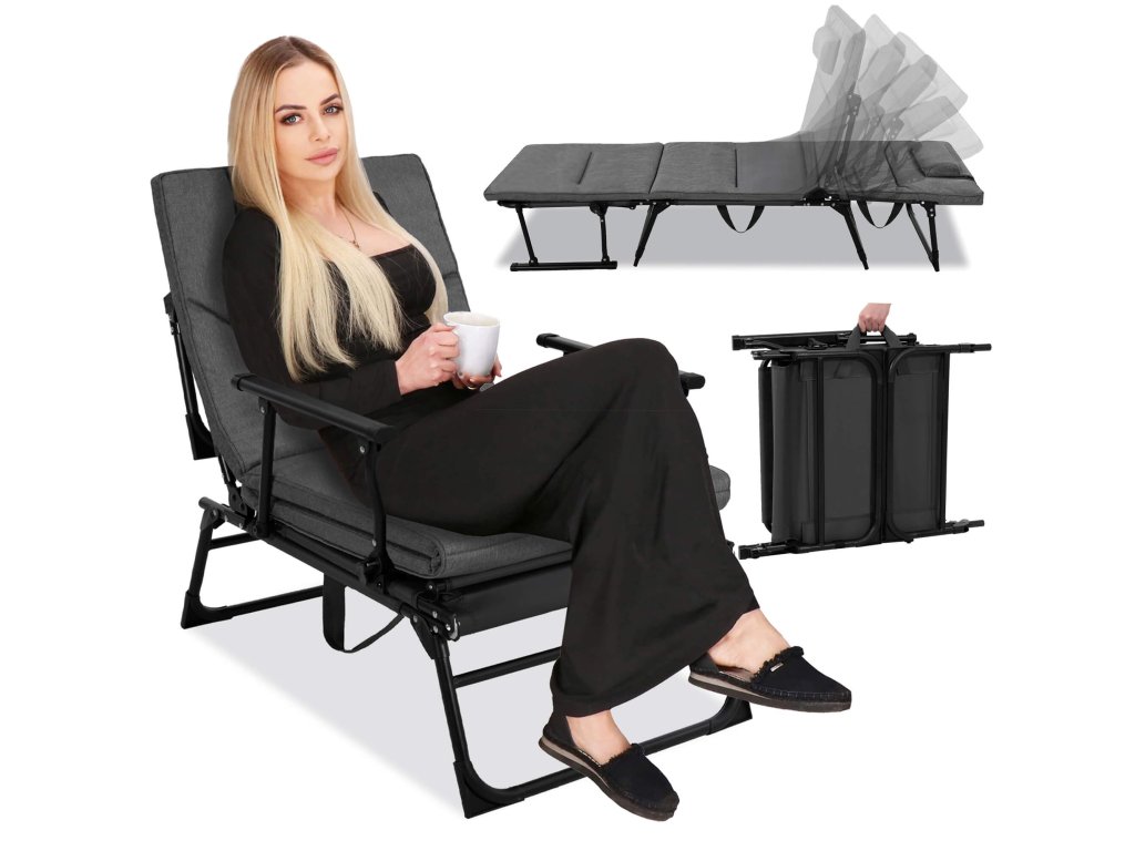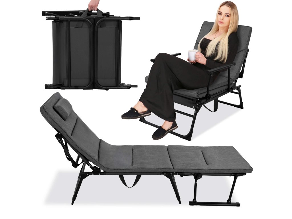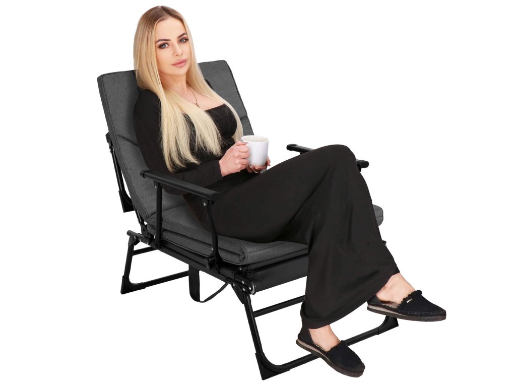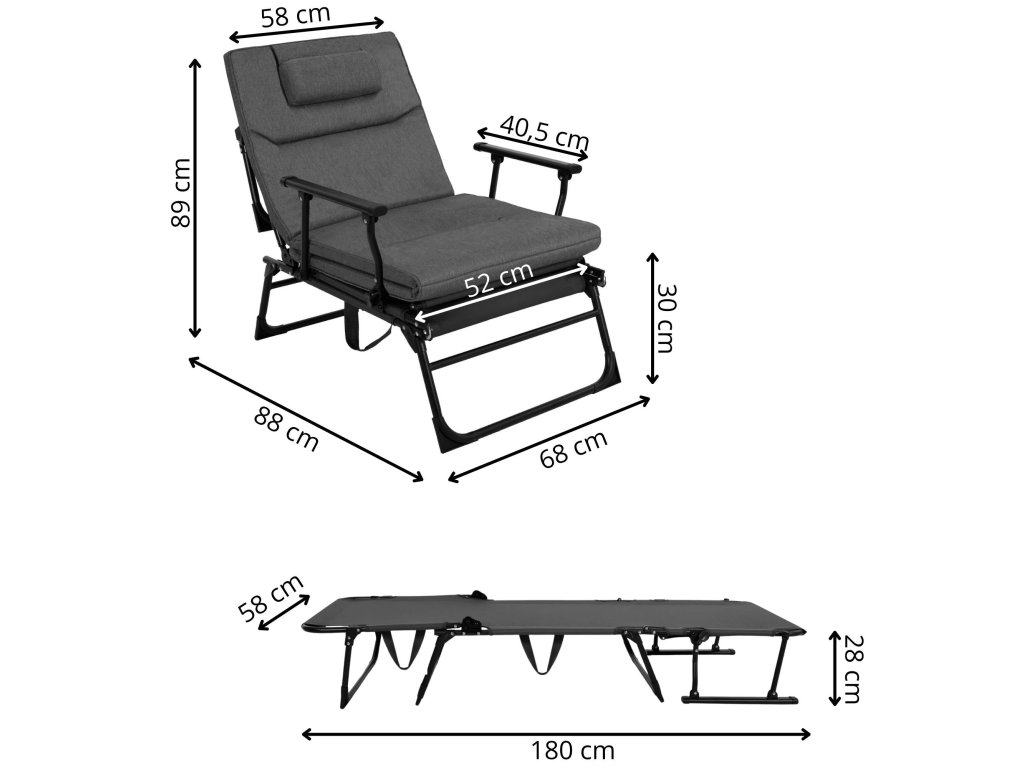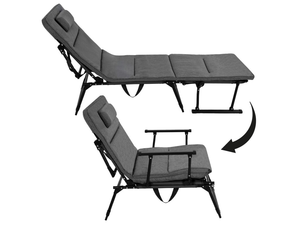 - Výrobek 2v1: židle s možností rozložení na lehátko.
