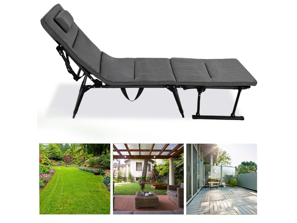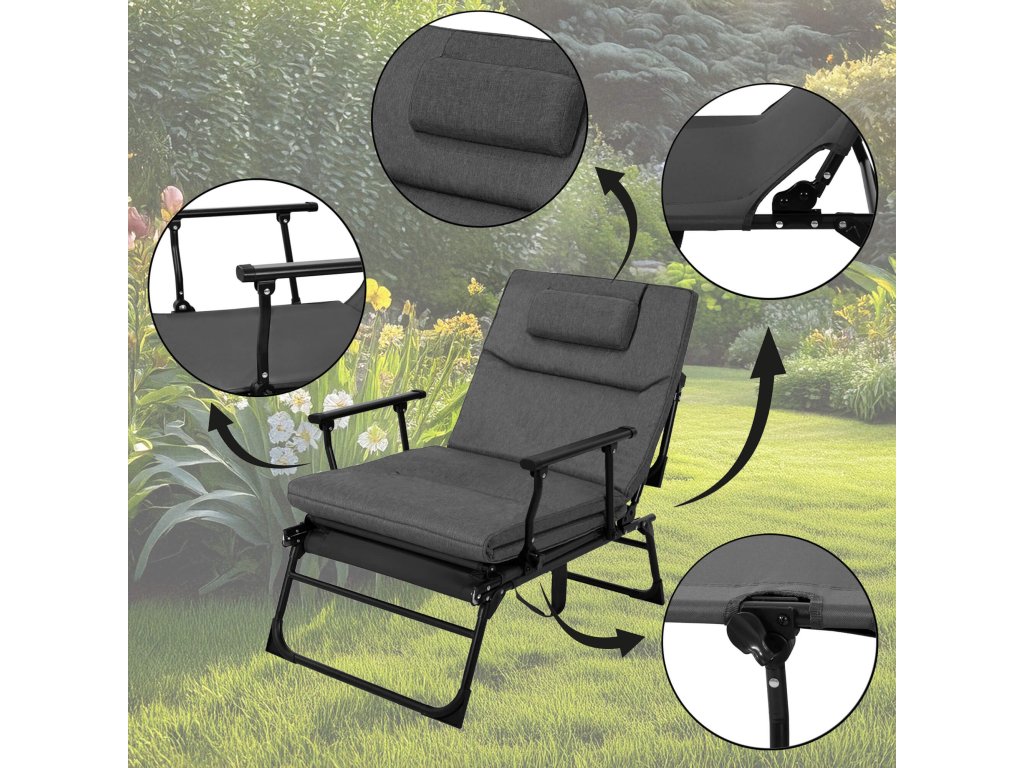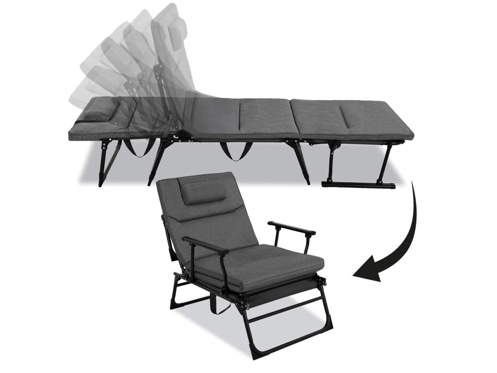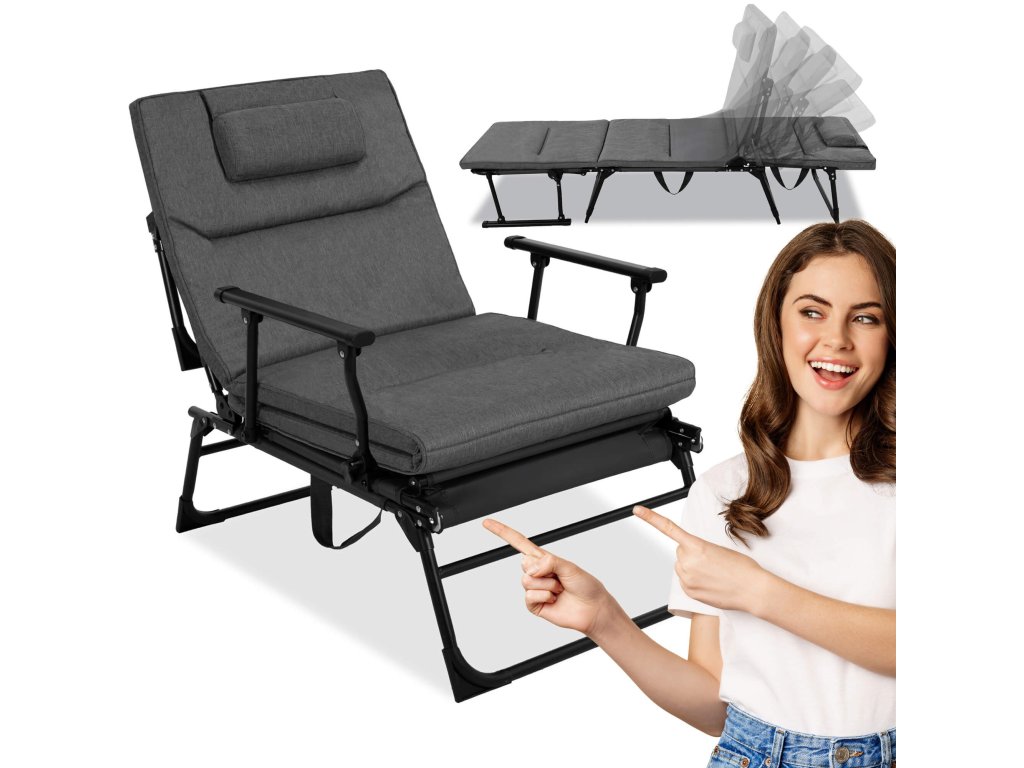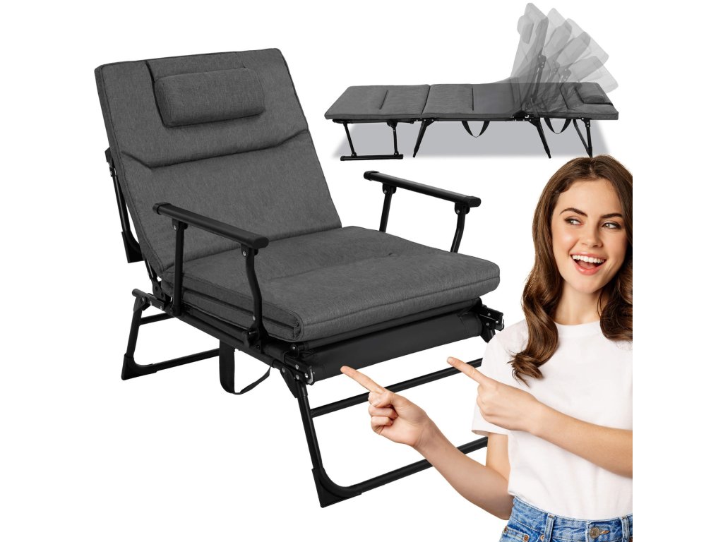 - Výrobek 2v1: židle s možností rozložení na lehátko.
