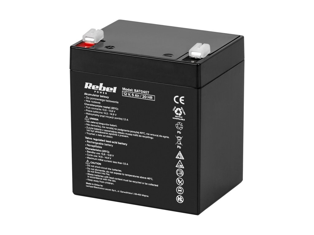 Gelový akumulátor Rebel 12V 5Ah je solidním zdrojem energie s širokým rozsahem použití, ideální pro nouzové napájecí systémy, elektronická zařízení a různé aplikace, které vyžadují spolehlivý a trvanlivý zdroj energie.