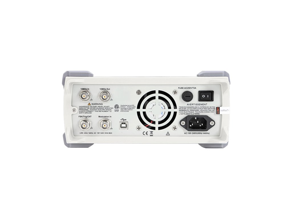 UTG2025A nabízí šířku analogového pásma až 25 MHz a generuje průběhy s frekvencí od 1 µHz do 25 MHz (pro sinusovky) a až 5 MHz (pro obdélníkové a impulsní průběhy). Díky vzorkovací frekvenci 125 MS/s a rozlišení 14 bitů zařízení zajišťuje vysokou přesnost a preciznost při generování signálů. Frekvenční rozlišení 1 µHz a přesnost ±0,5 ppm (při 25°C) umožňují přesnou kontrolu nad výstupními parametry.