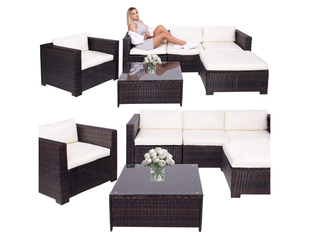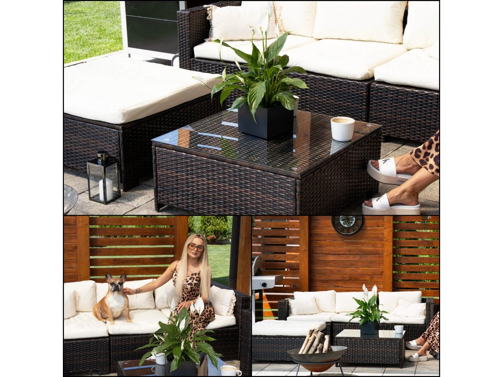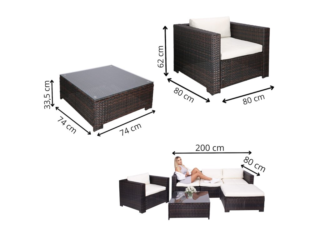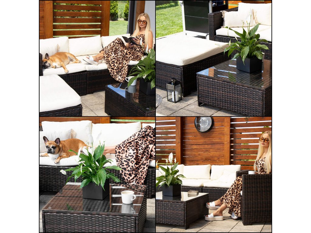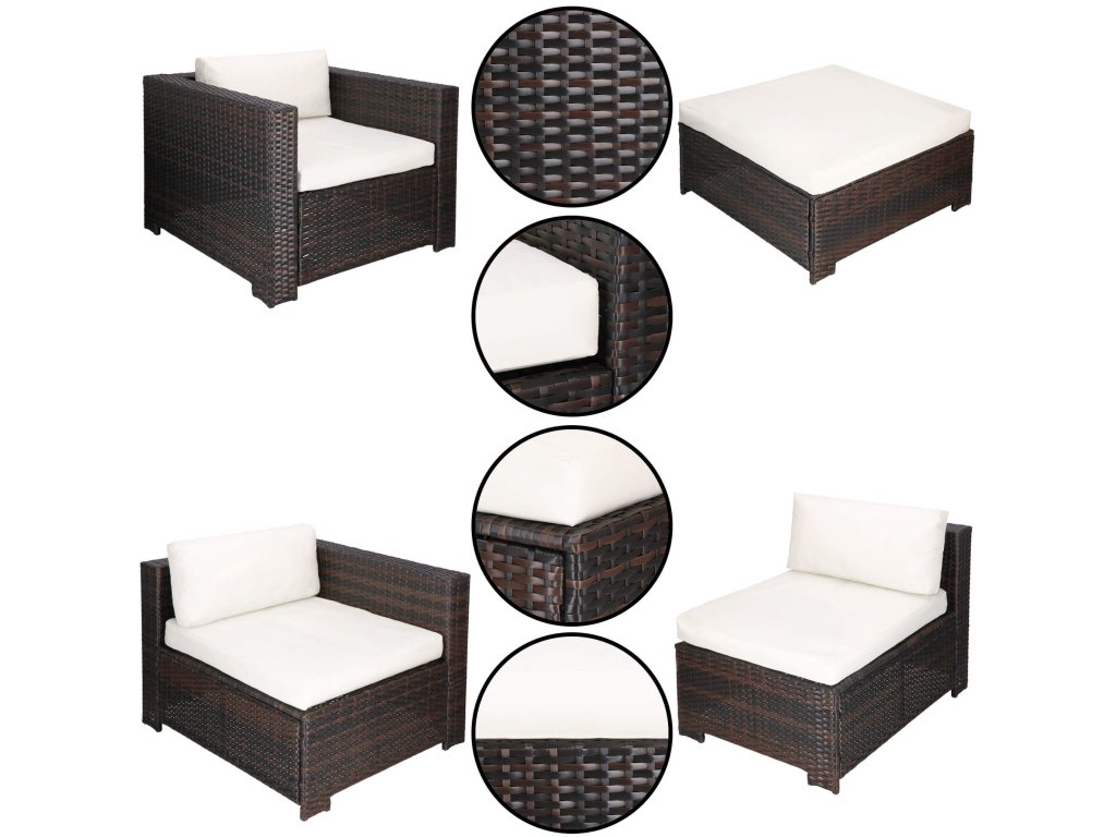 - Prvky v sadě: 1x křeslo, 2x rohový modul (levý a pravý), 1x rovný modul s opěrkou, 1x čtvercový modul, 1x konferenční stolek