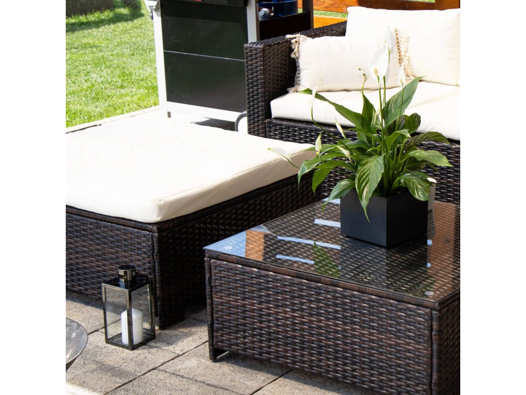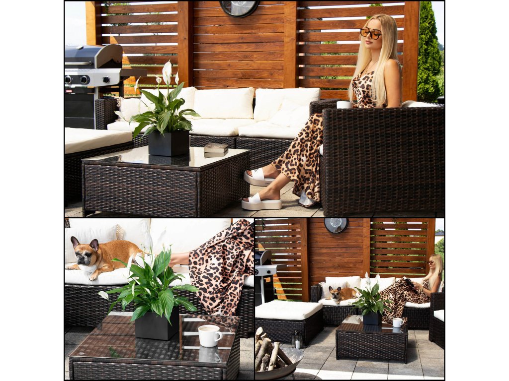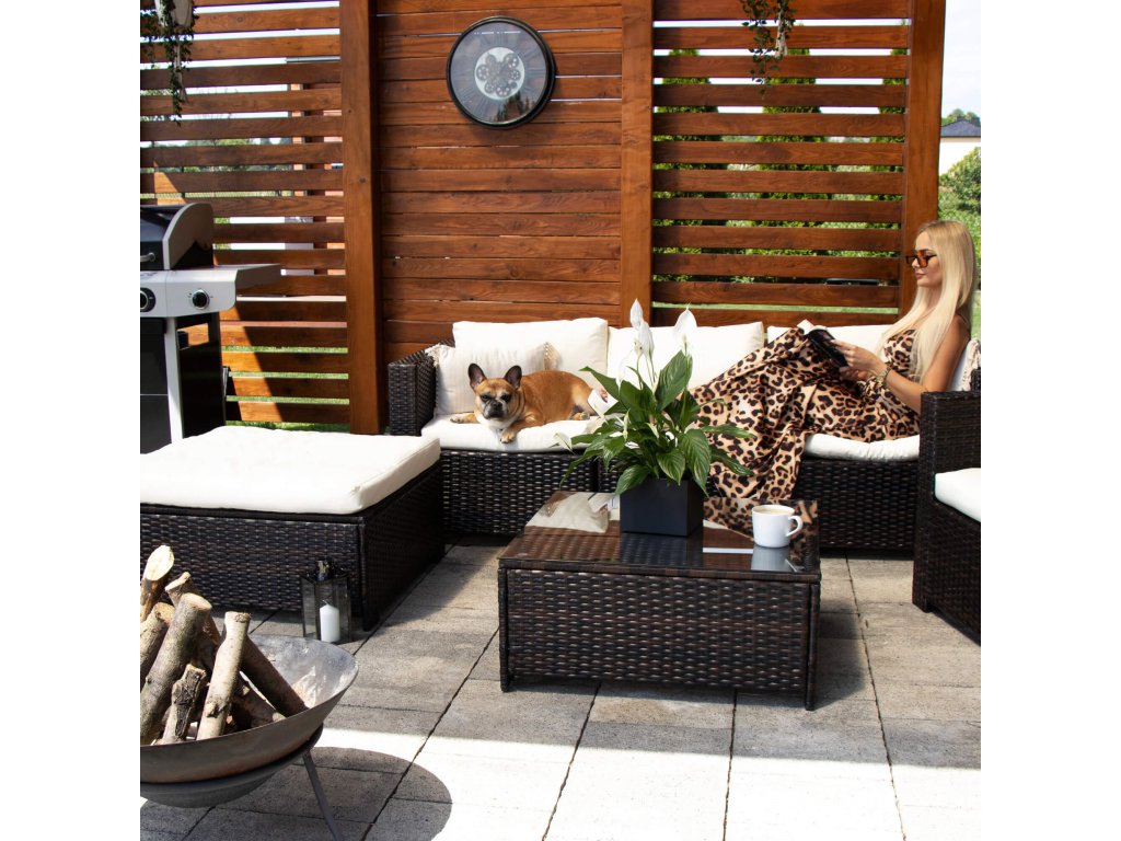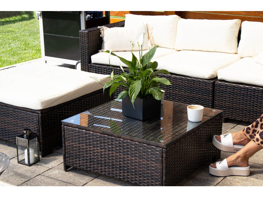 - Materiál: technoratan, tvrzené sklo, polyester/PP pěna