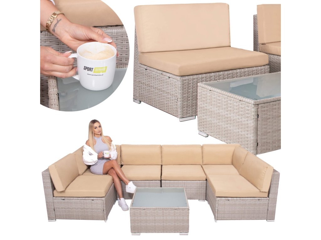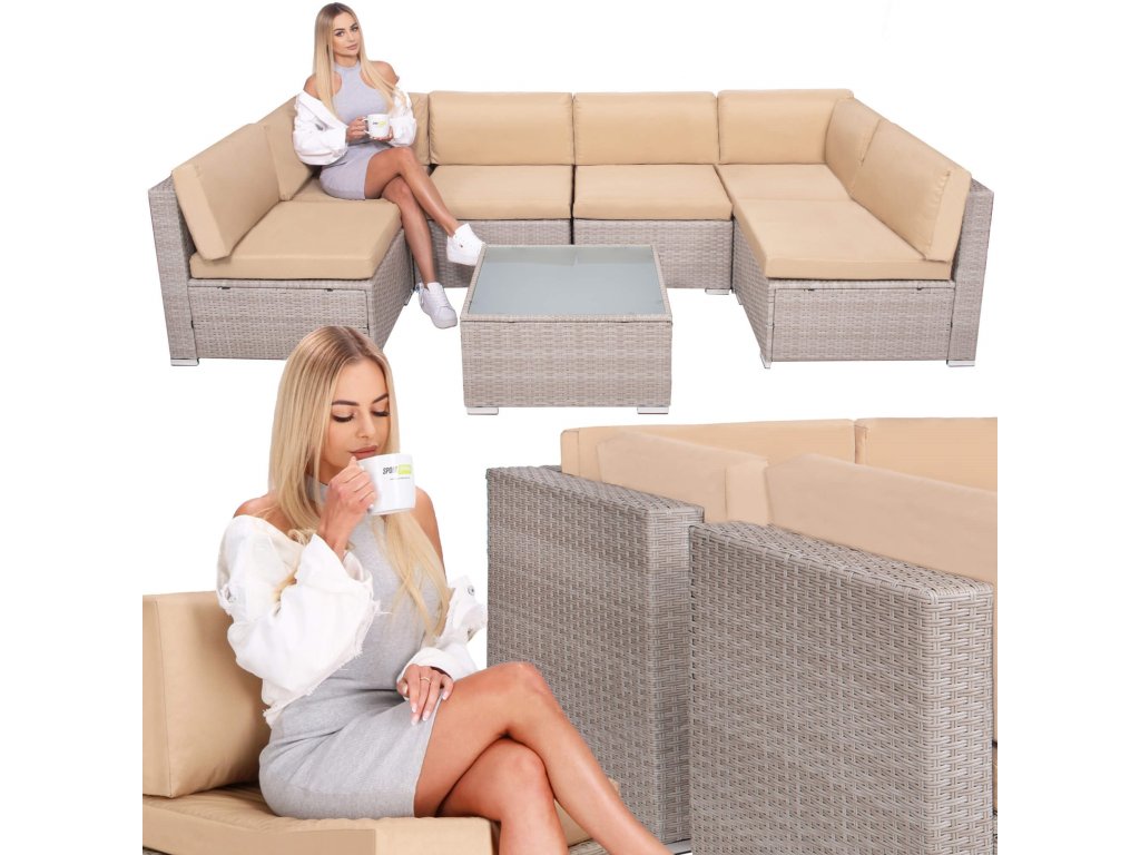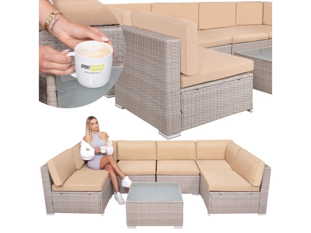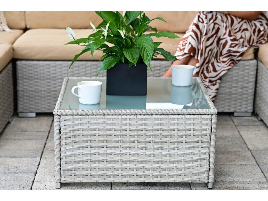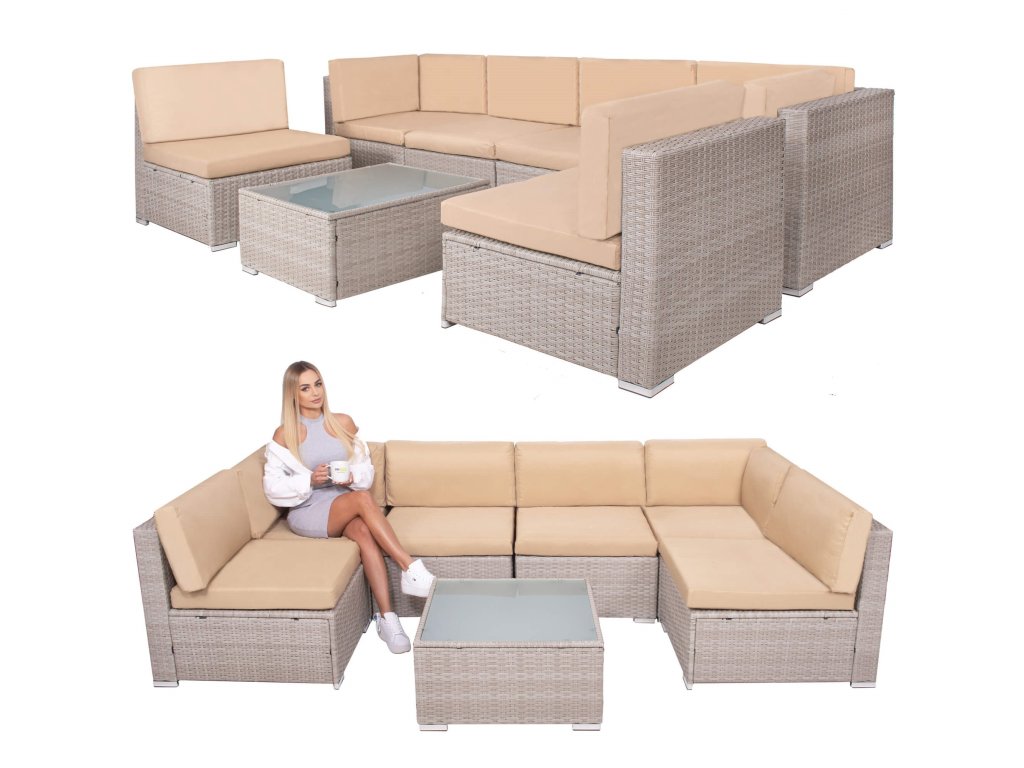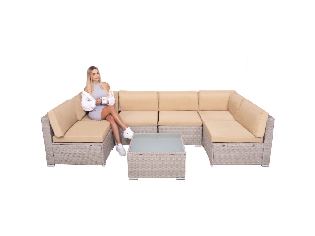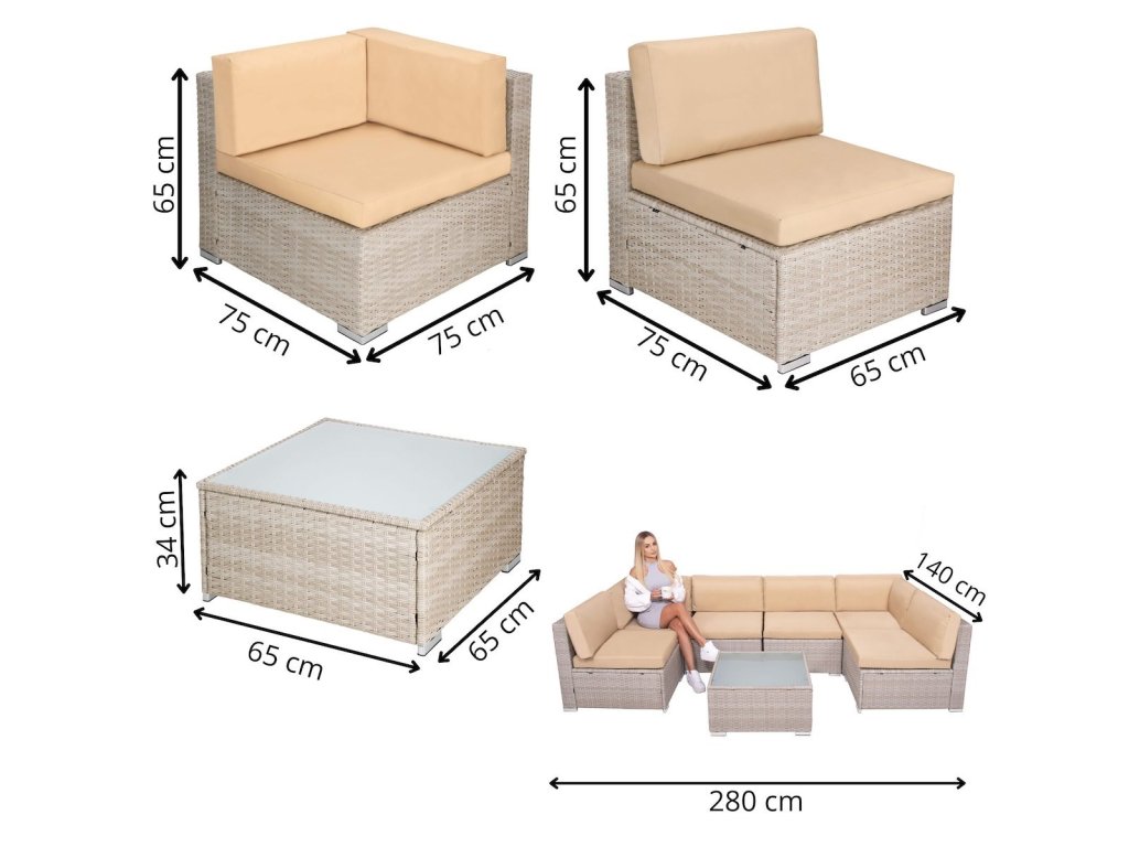 - Prvky v sadě: 4x přímý modul, 2x rohový modul, 1x konferenční stolek