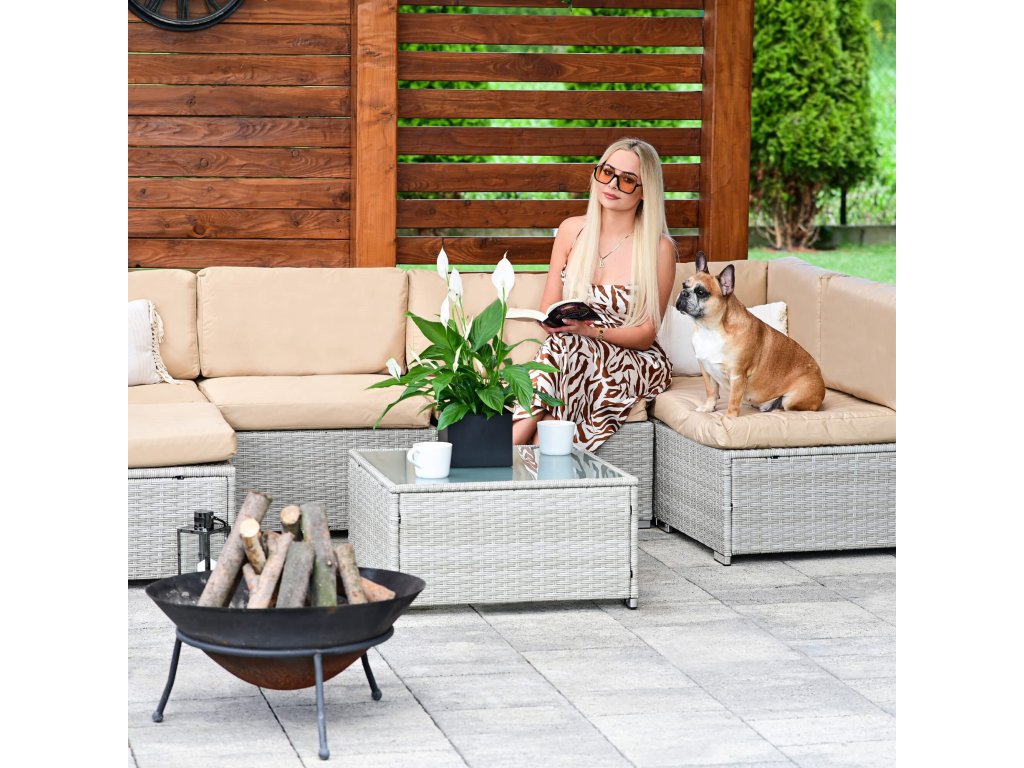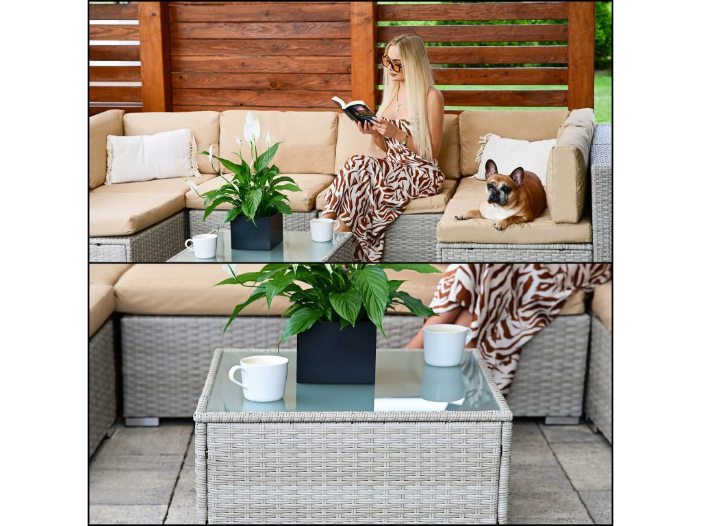 - Materiál: technoratan, tvrzené sklo, polyester/PP pěna