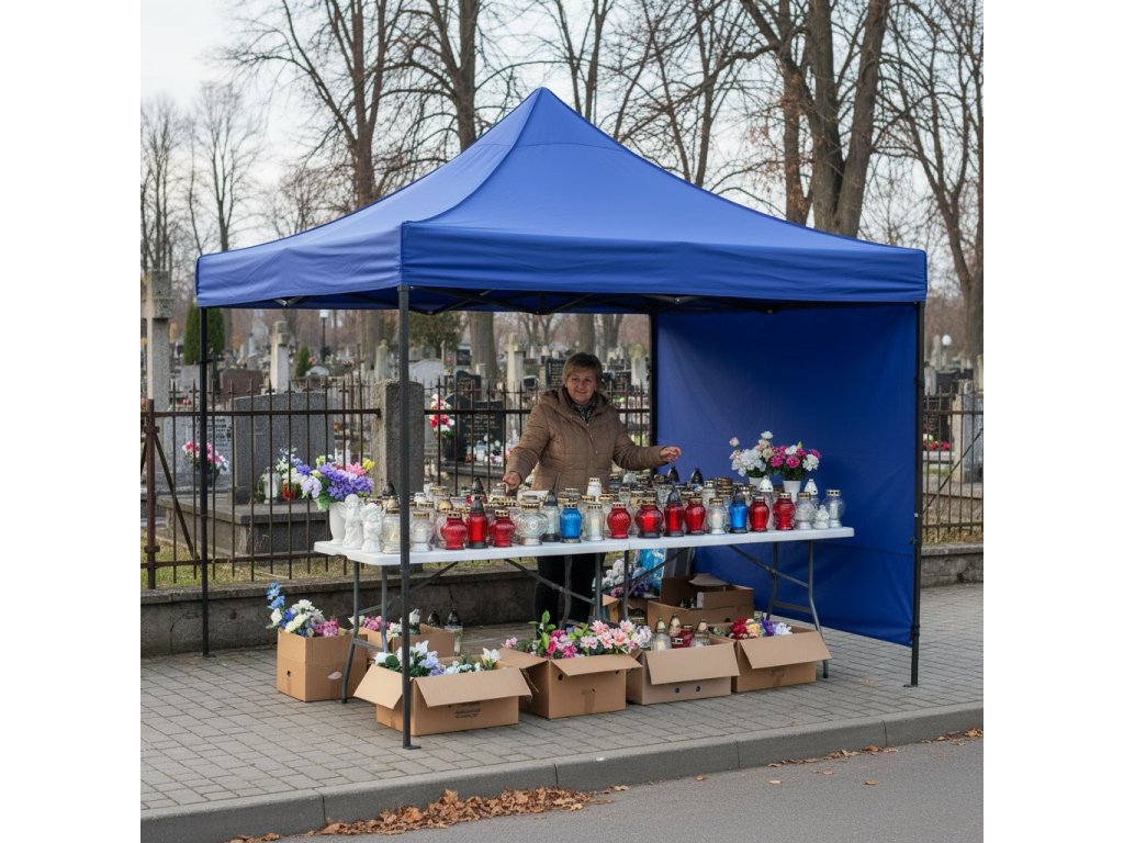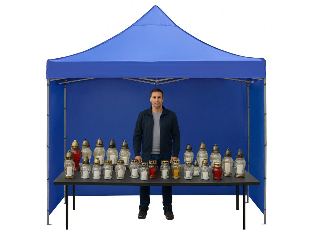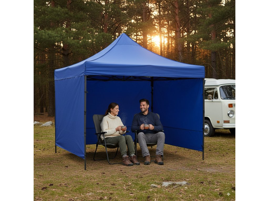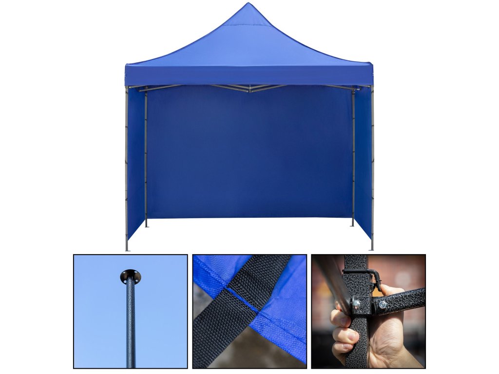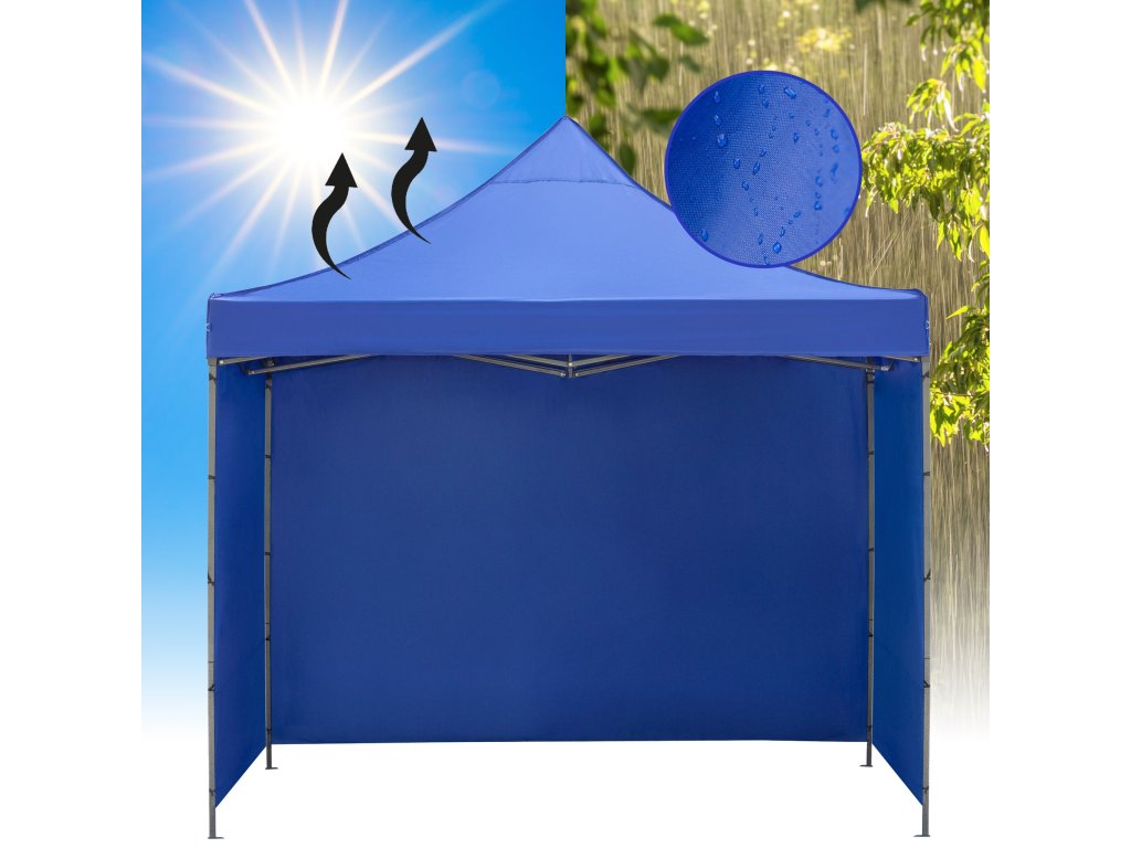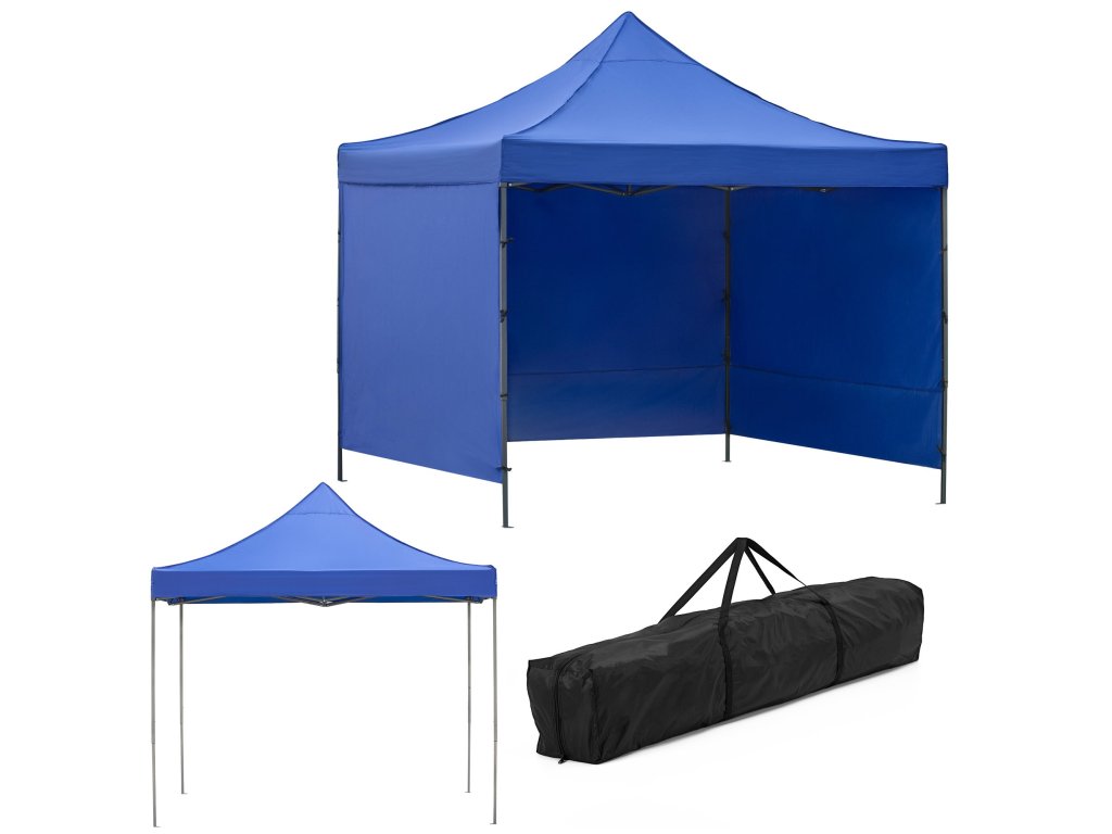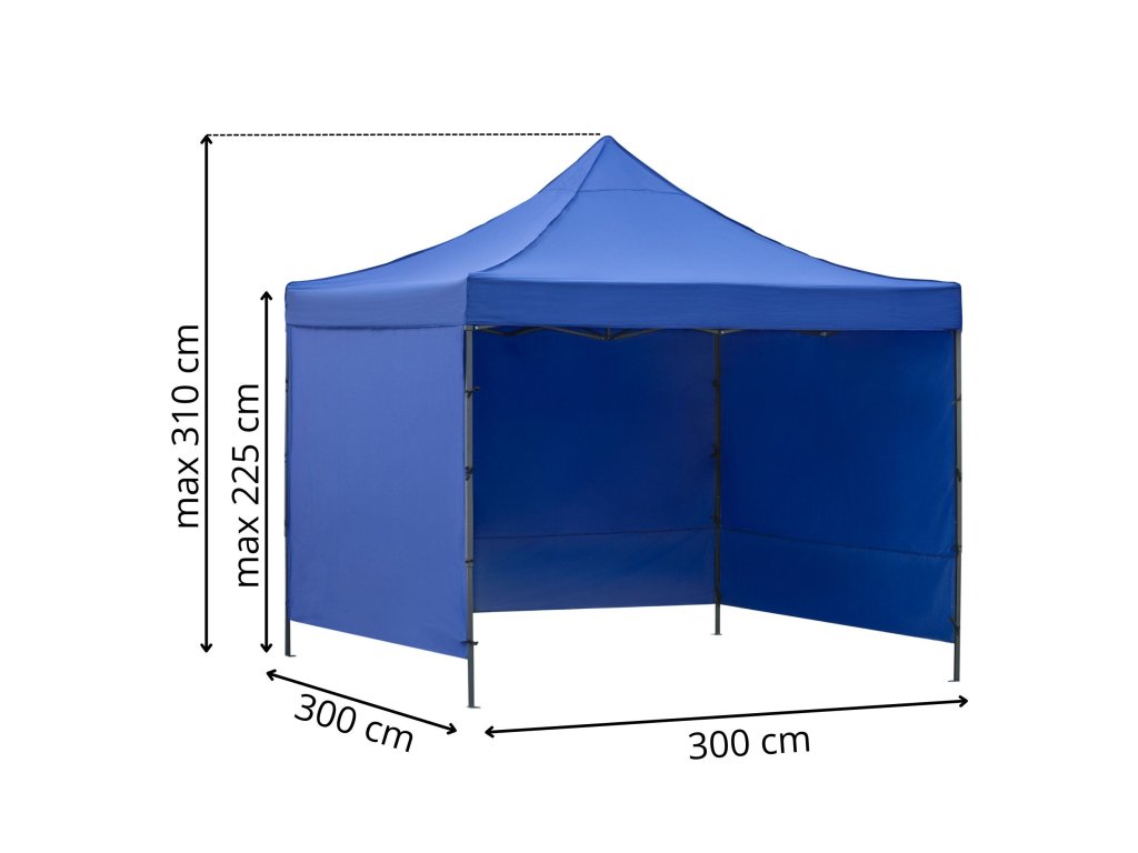 - Materiál rámu: ocel Materiál stěn a střechy: polyester - tkanina Oxford 420D potažená hydrofobním povlakemBarva: tmavě modrá, černáRozměry: 300 x 300 cmVýška: max 310 cmObal v saděRozměry:Rozměry složeného pavilonu: 16 x 16 x 145 cm