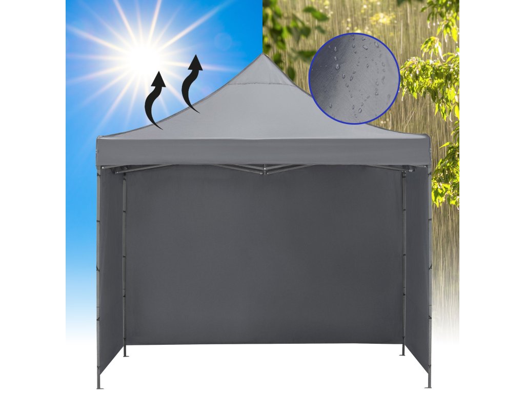 - V sadě: střecha, 3x stěna 3 m, rám, potah s úchyty uzavíratelný na zip, 8 kolíků a 4 šňůry, návod