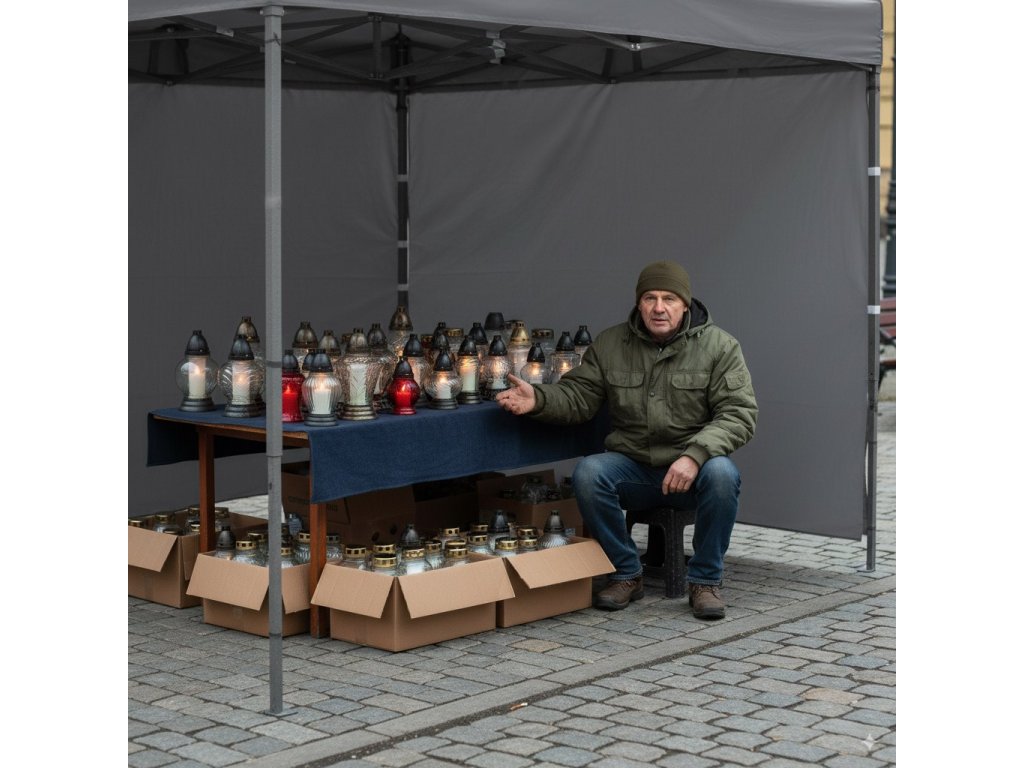 - Rozměry složeného pavilonu: 16 x 16 x 145 cm