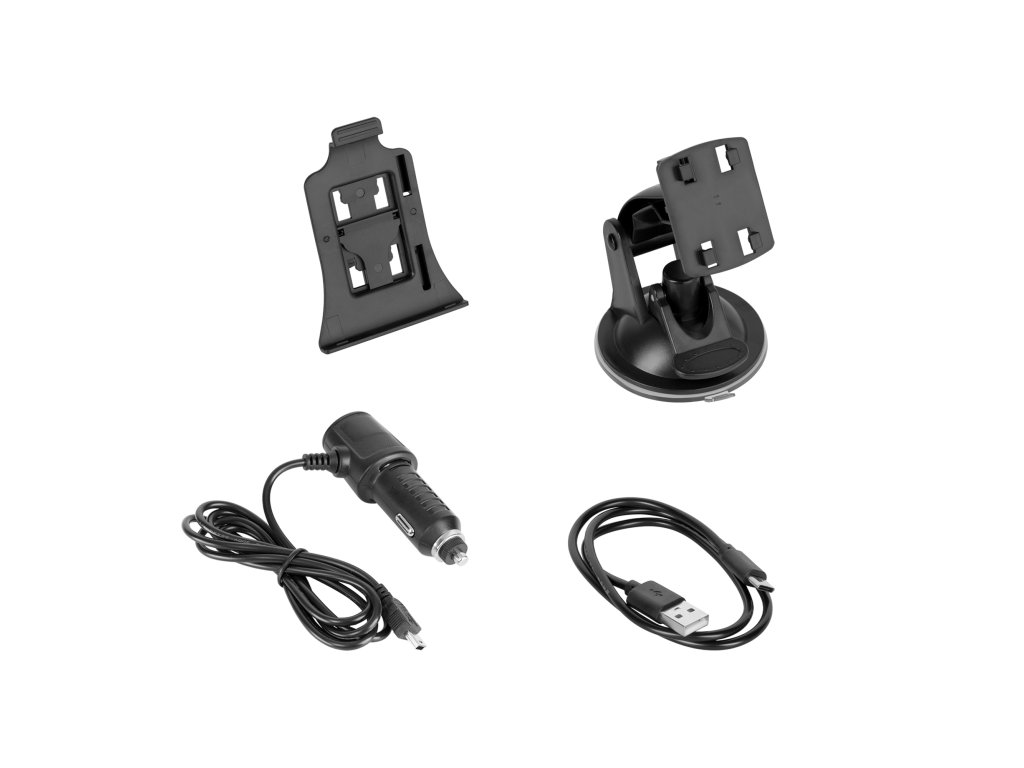 V balení se nachází autoadaptér, držák na sklo a uživatelská příručka. Navigace má rozměry 128 x 88 x 13 mm a váží pouze 158 g, což umožňuje snadné přenášení a montáž. Baterie s kapacitou 1200 mAh Li-Po a autoadaptér (DC 12-24 V, výstup DC 5 V, 2 A) zaručují dlouhou dobu provozu a pohodlí při používání na cestách. Provozní teplota v rozmezí -10°C - 60°C zaručuje spolehlivost v různých povětrnostních podmínkách.