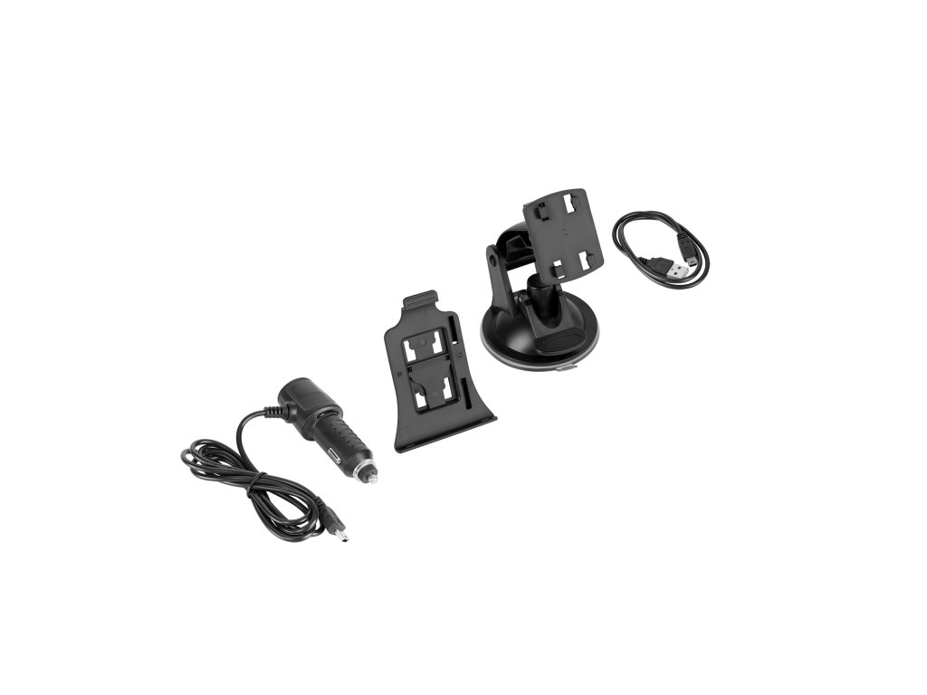 Sada: Zařízení PY-GPS5015.1, autonabíječka, držák na sklo, návod k použití