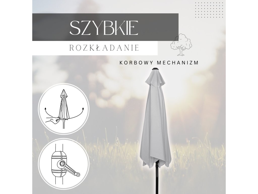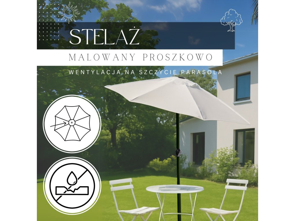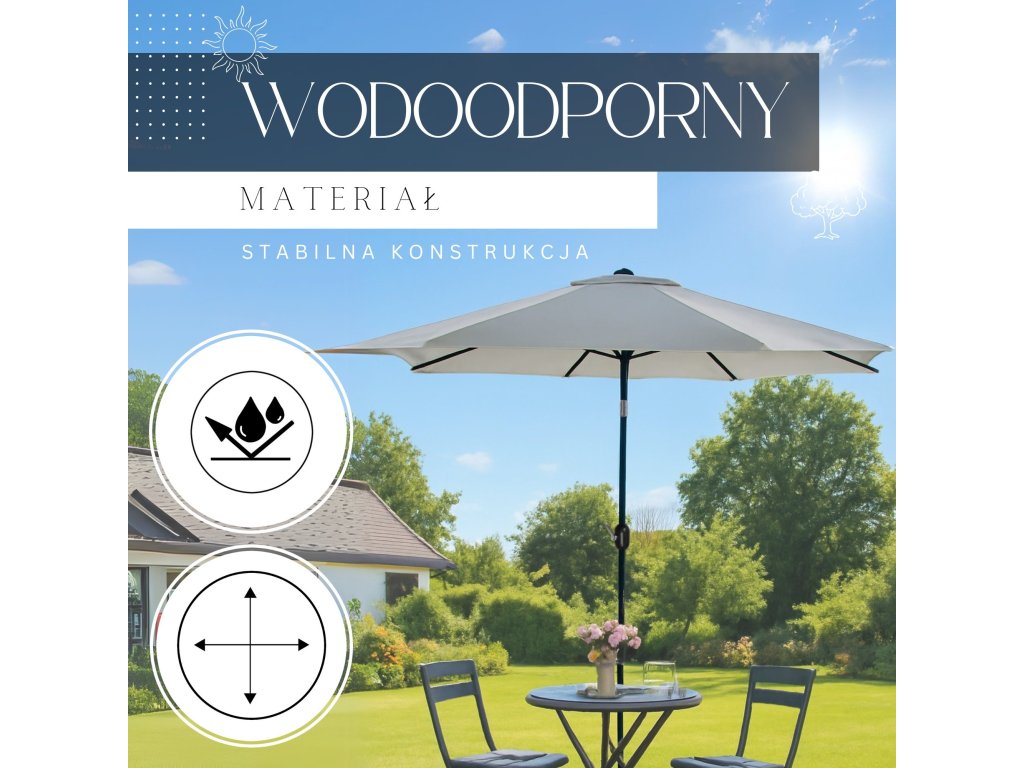 - Rozpětí deštníku: 250 cm