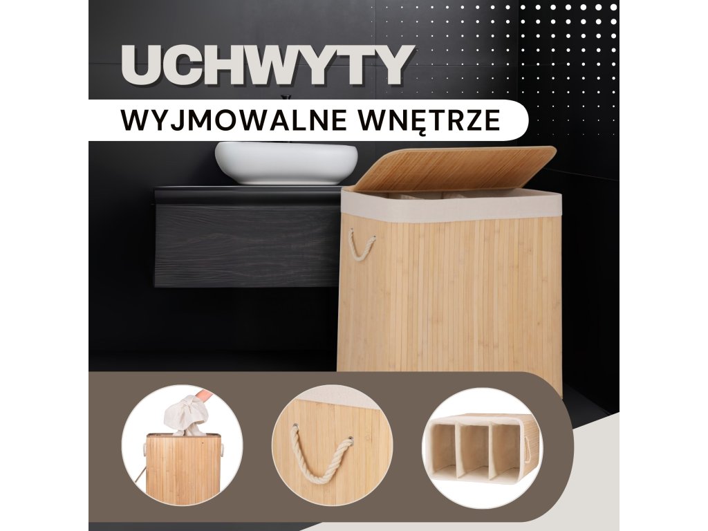 - Položky v sadě (6 ks): bambusové tělo, dno z MDF, horní výztuha z kovového drátu, vnitřek z tkaniny, bambusové víko, popruh pro montáž víka na zip