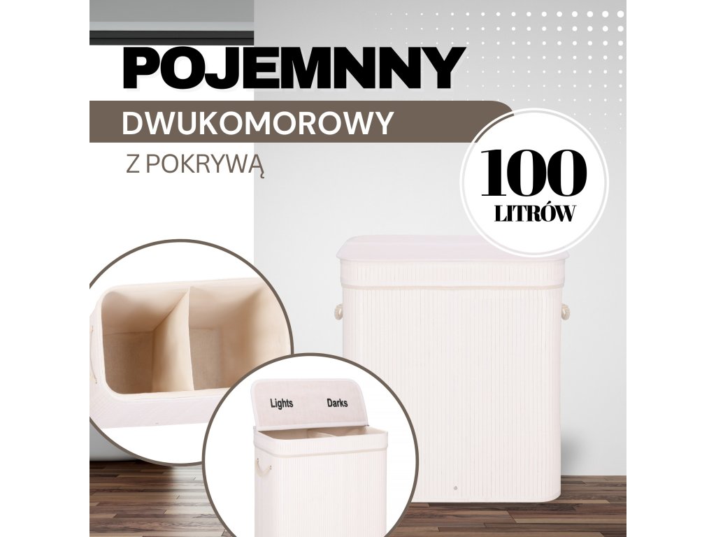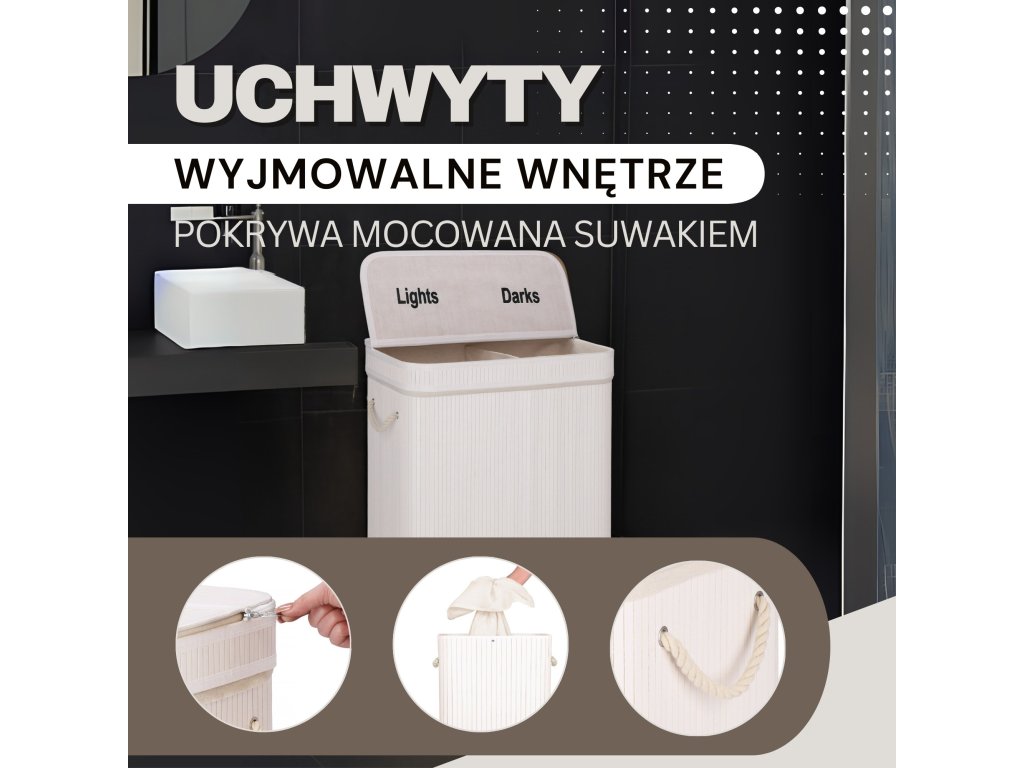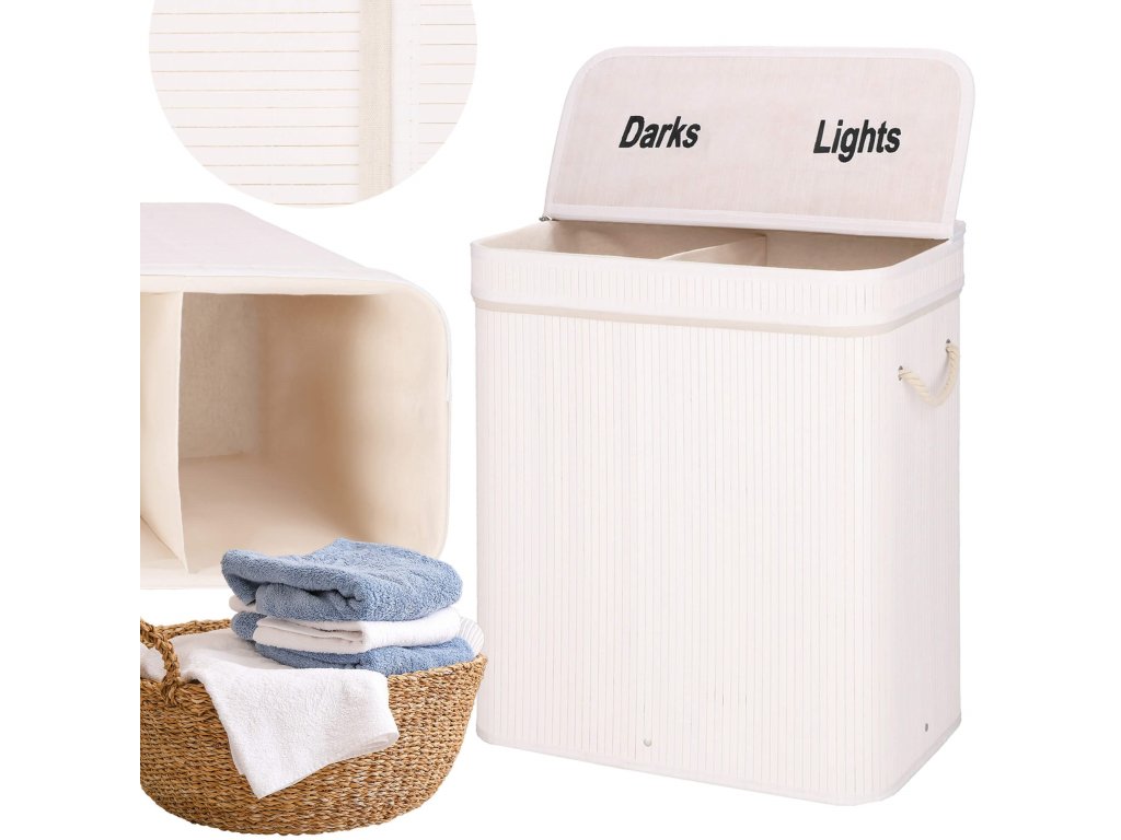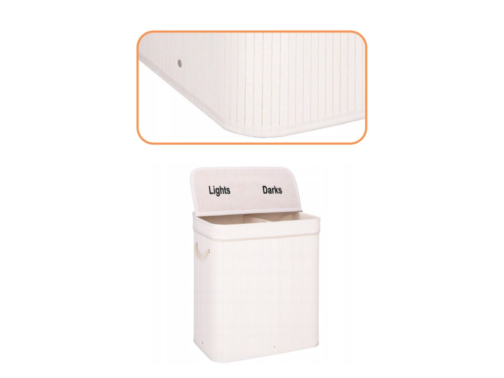 - Prvky v sadě (6 prvků): bambusové tělo, dno z MDF, výztuž horního prvku z kovového drátu, vnitřek z látky, bambusový poklop - 2 prvky
