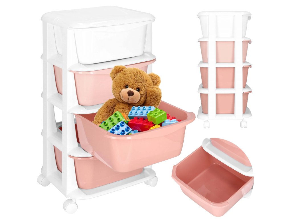 - Barvy zásuvek: červená, bílá, růžová (pastelové)