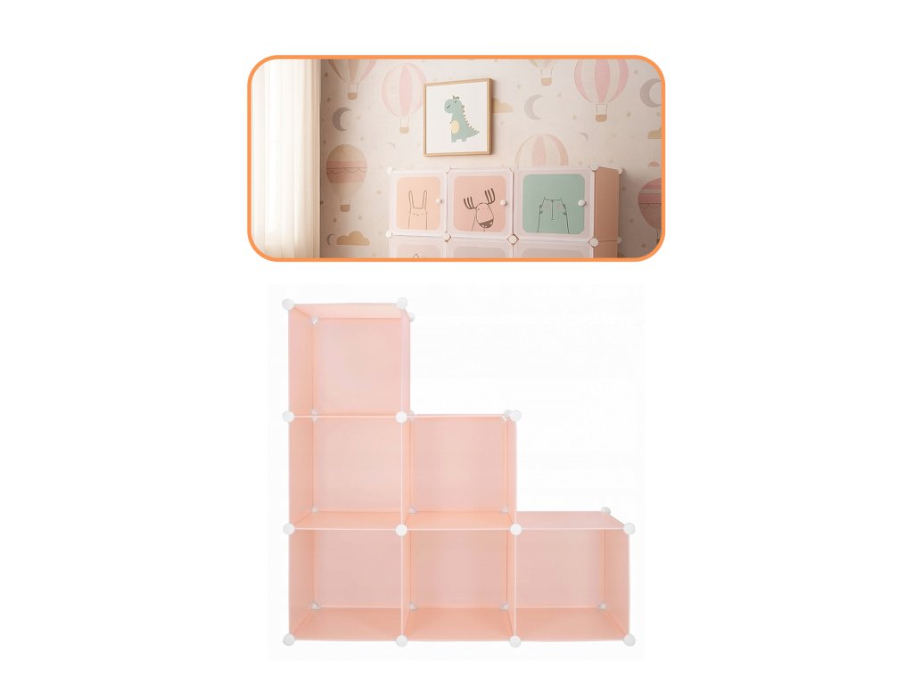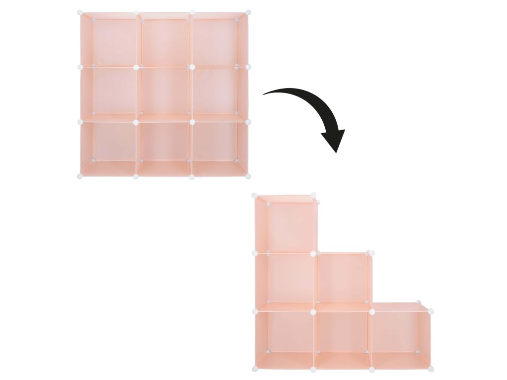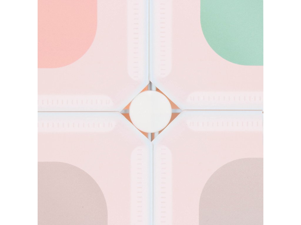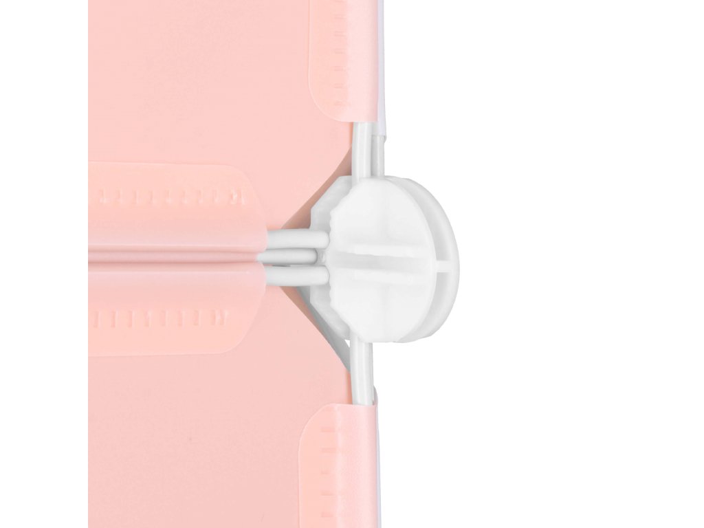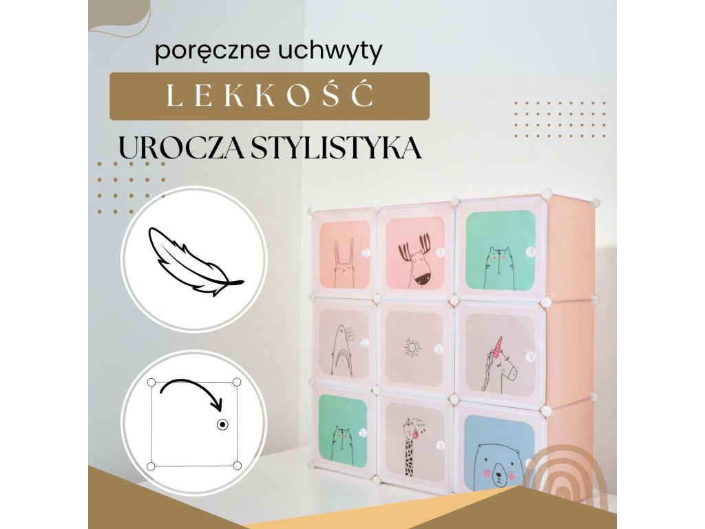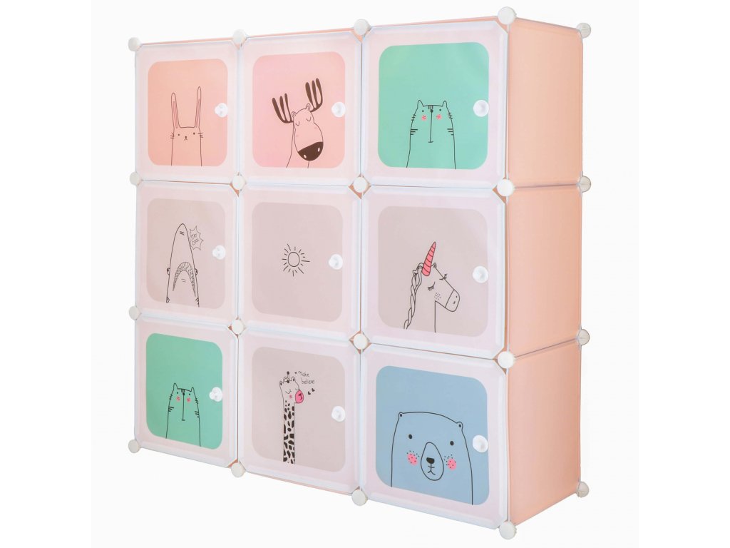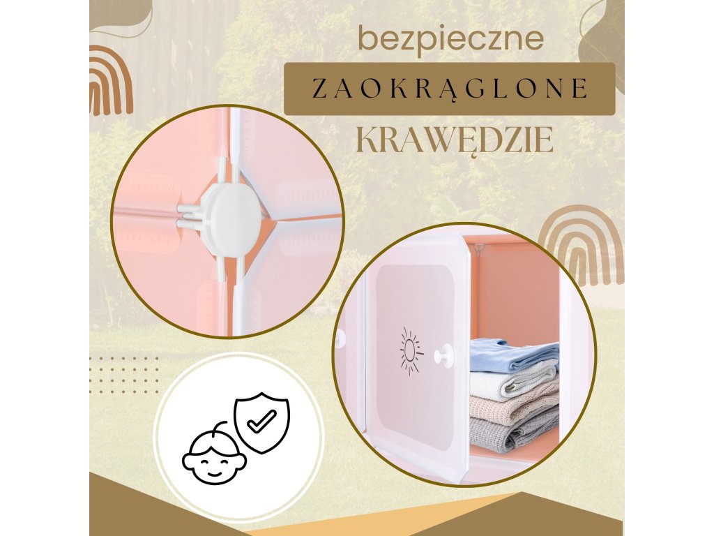 - Sada se skládá z: 33 růžových čtverců / 9 dveří s potiskem / 32 rohů / 9 západek na dveře / 9 držadel pro obsluhu dvířek skříňky / dřevěného kladiva