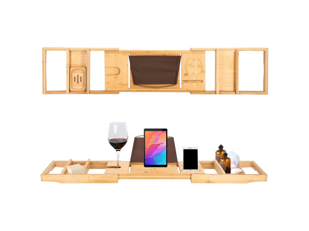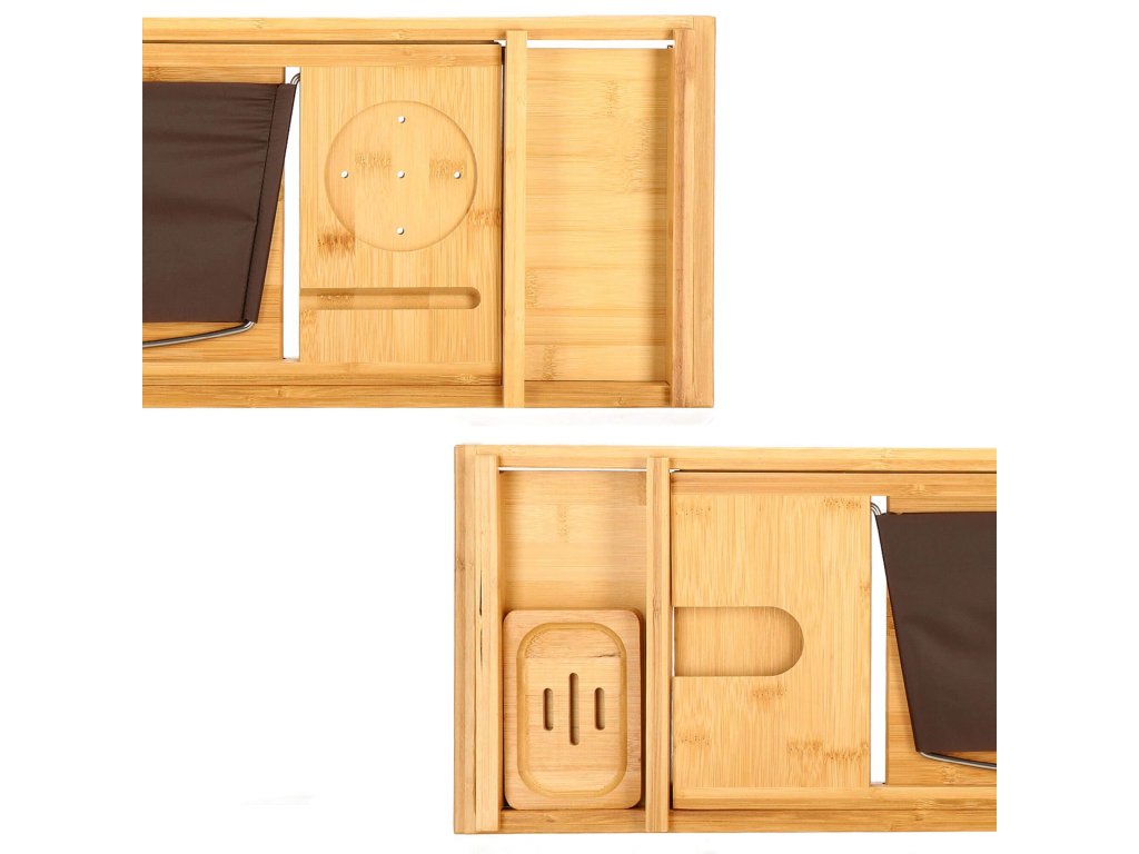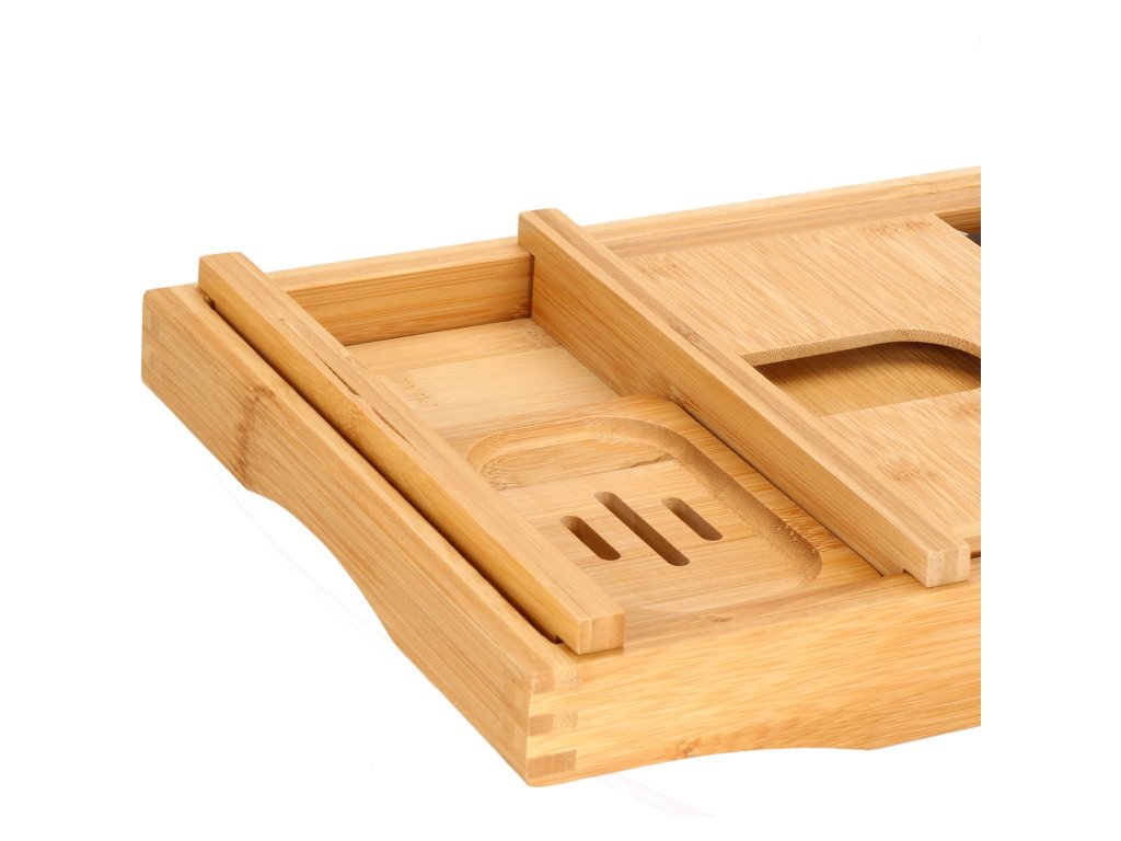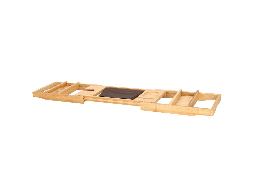 Bambusová tácka - police na vanu s držákem na sklenici, telefon, knihu tablet nebo iPad