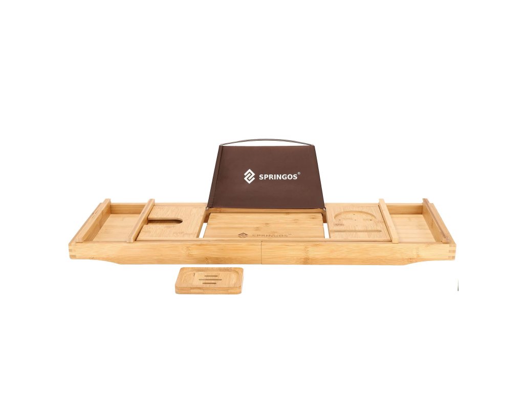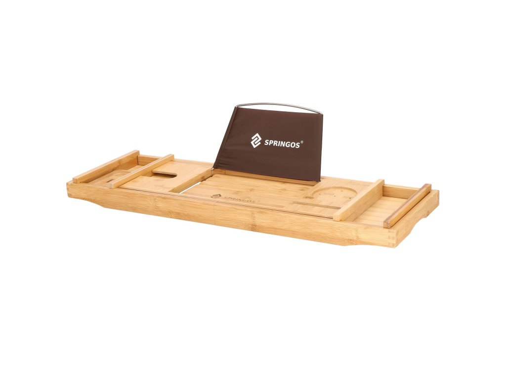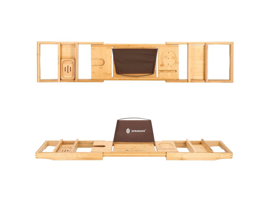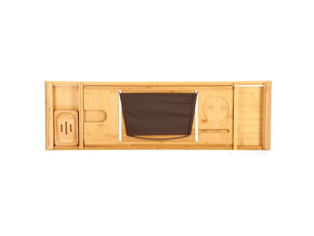 Bambusová tácka - police na vanu s držákem na sklenici, telefon, knihu tablet nebo iPad