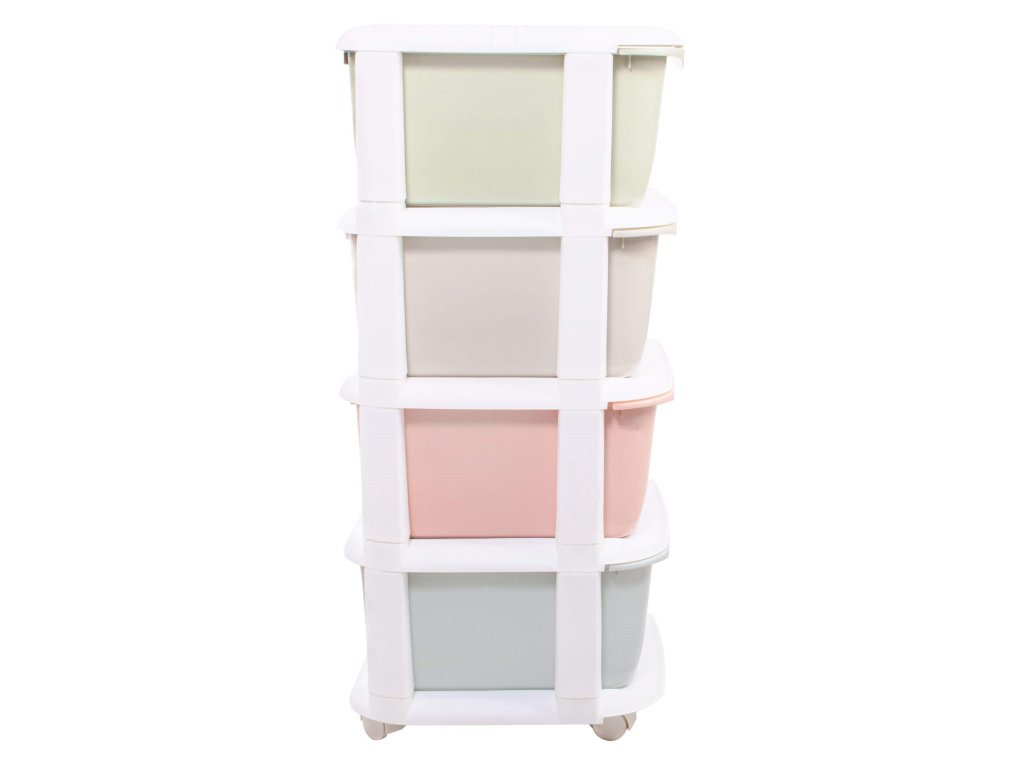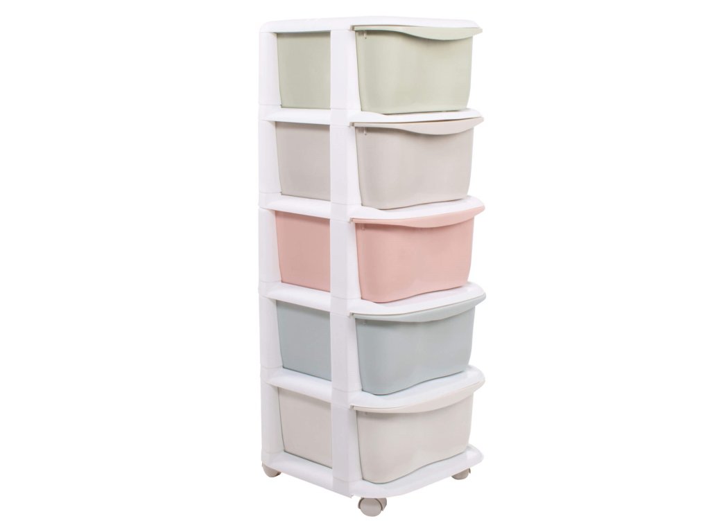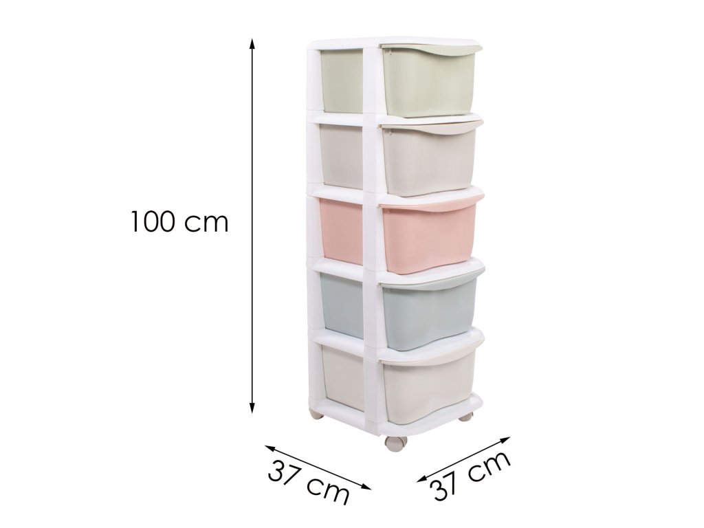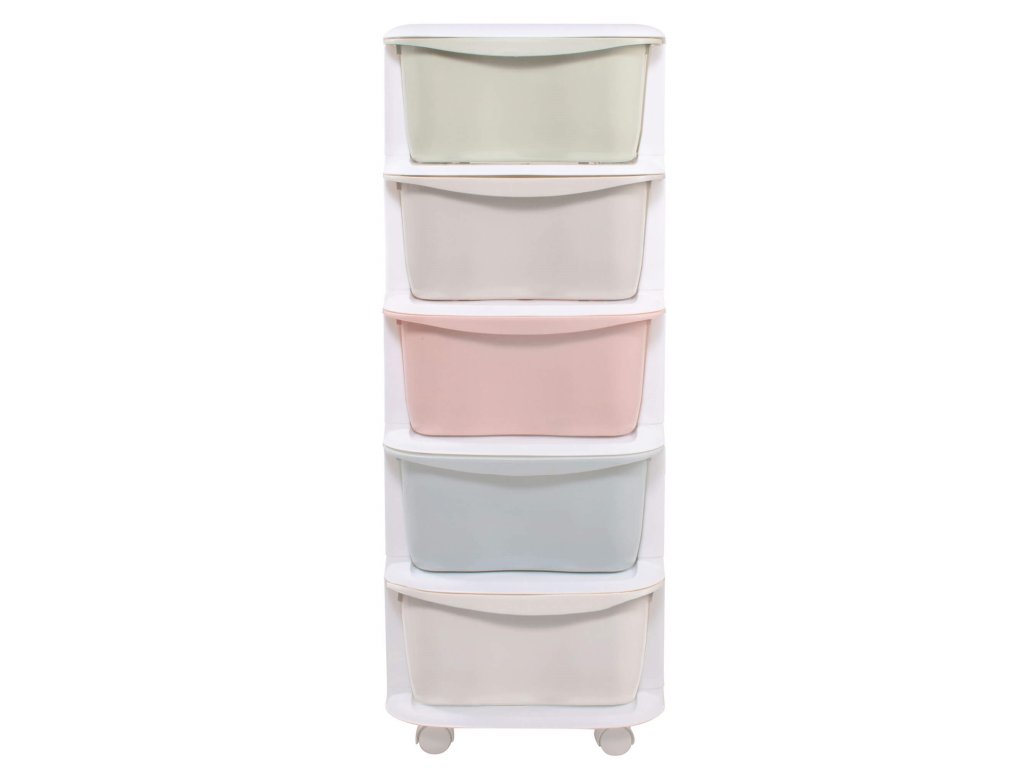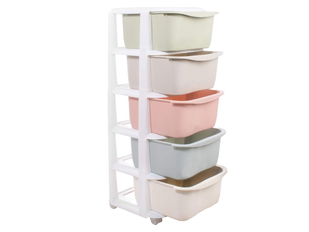 - Barva: bílý rám + police v pastelových odstínech