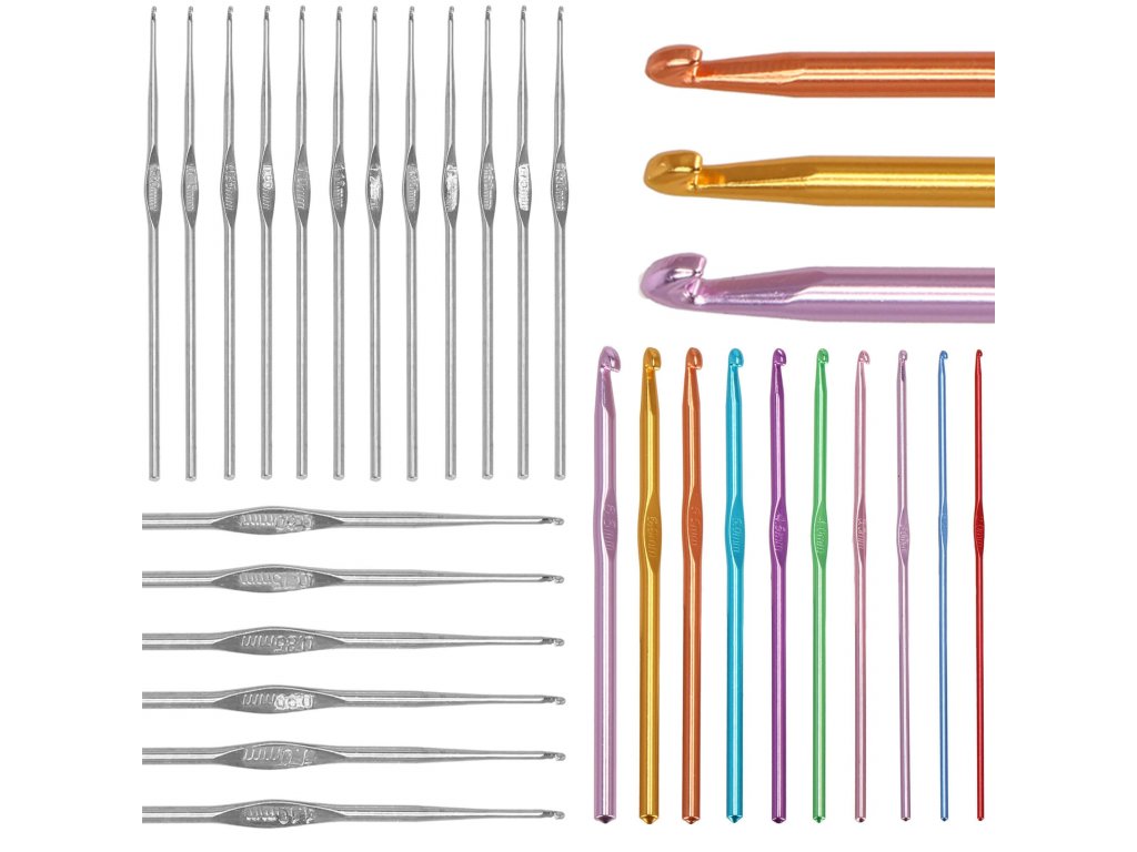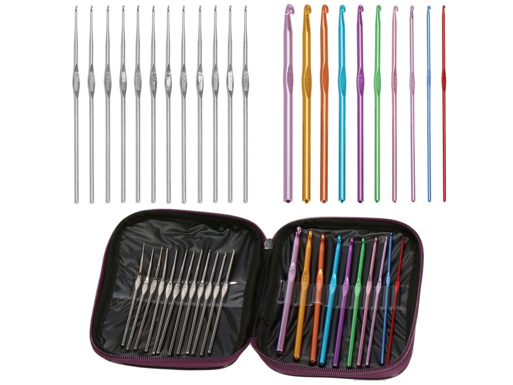 - 10 x barevné hliníkové háčky ve velikostech: 2.0, 2.5, 3.0, 3.5, 4.0, 4.5, 5.0, 5.5, 6.0, 6.5 mm