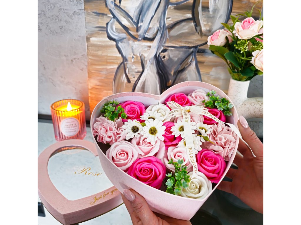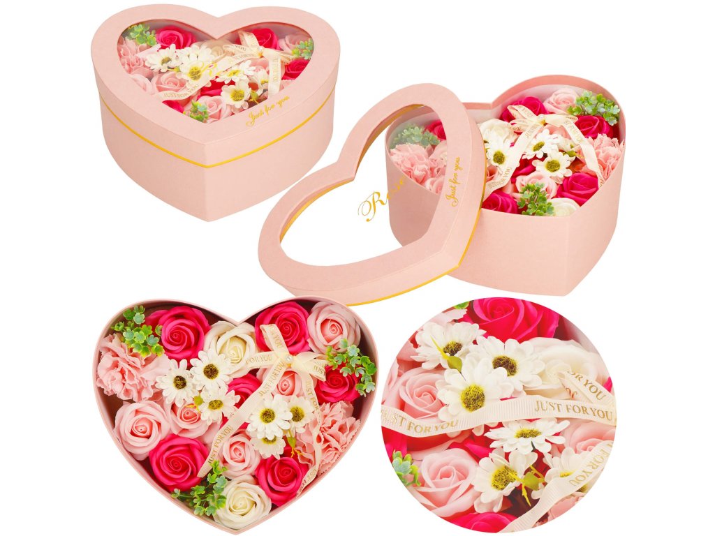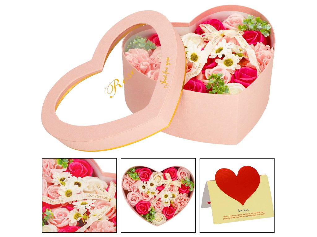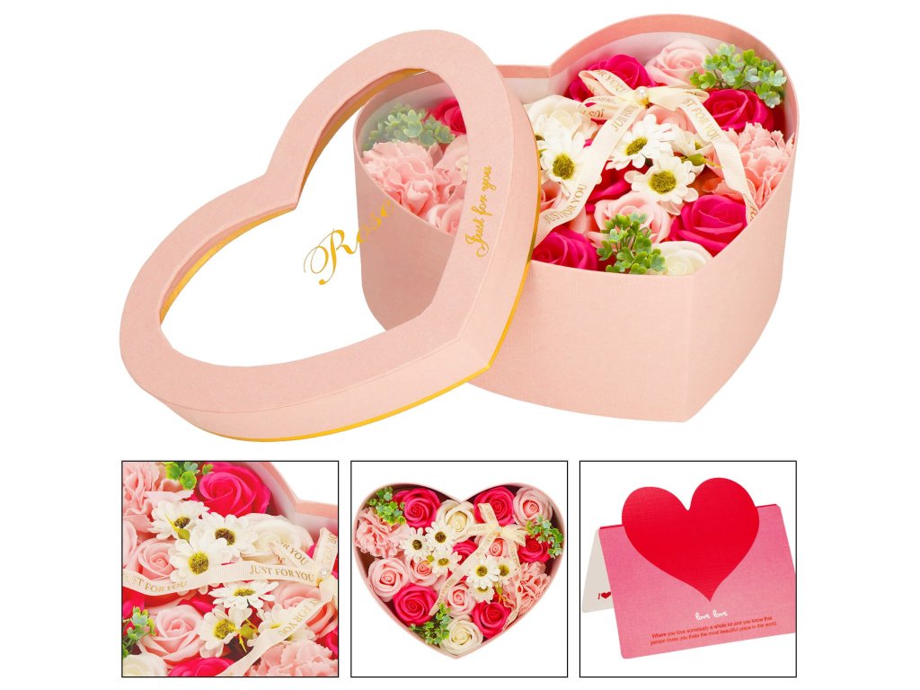 - Víko vybaveno průhledným, plastovým otvorem ve tvaru srdce s nápisem Rose