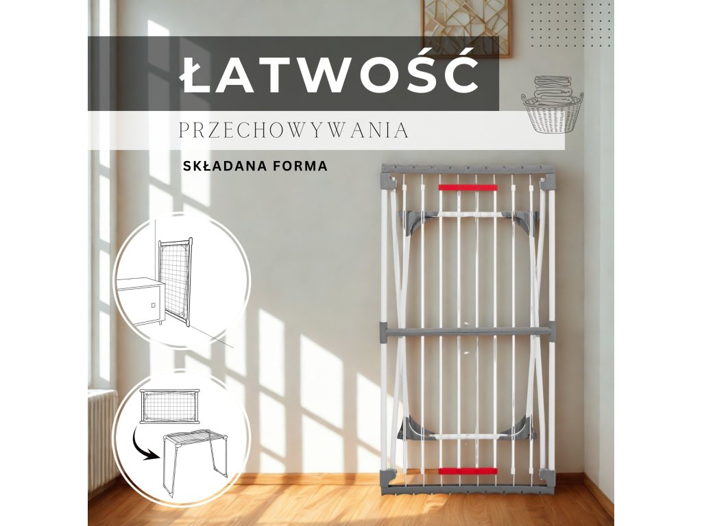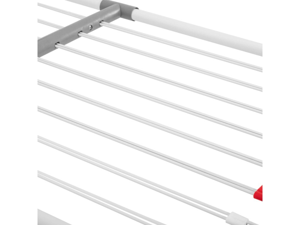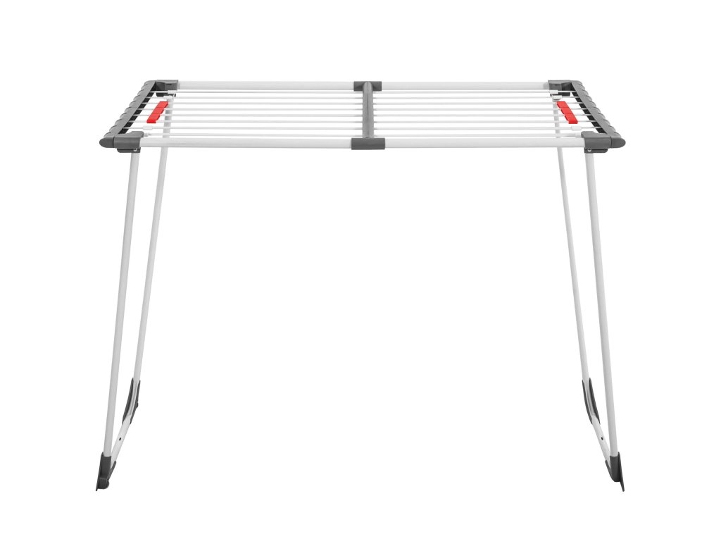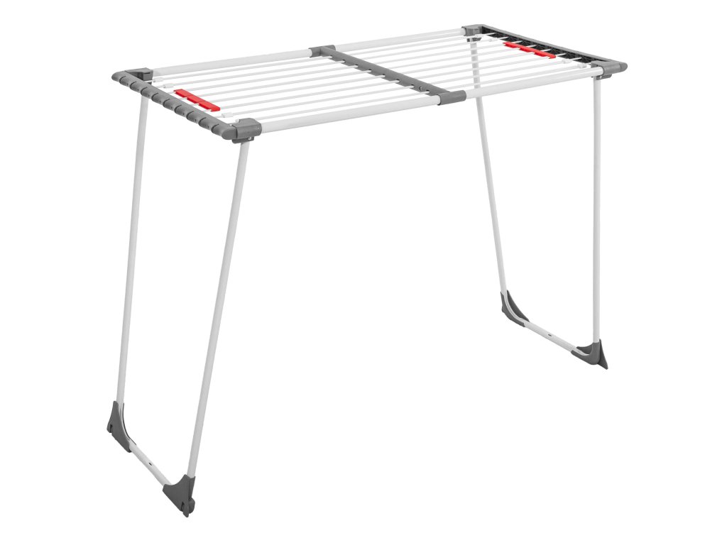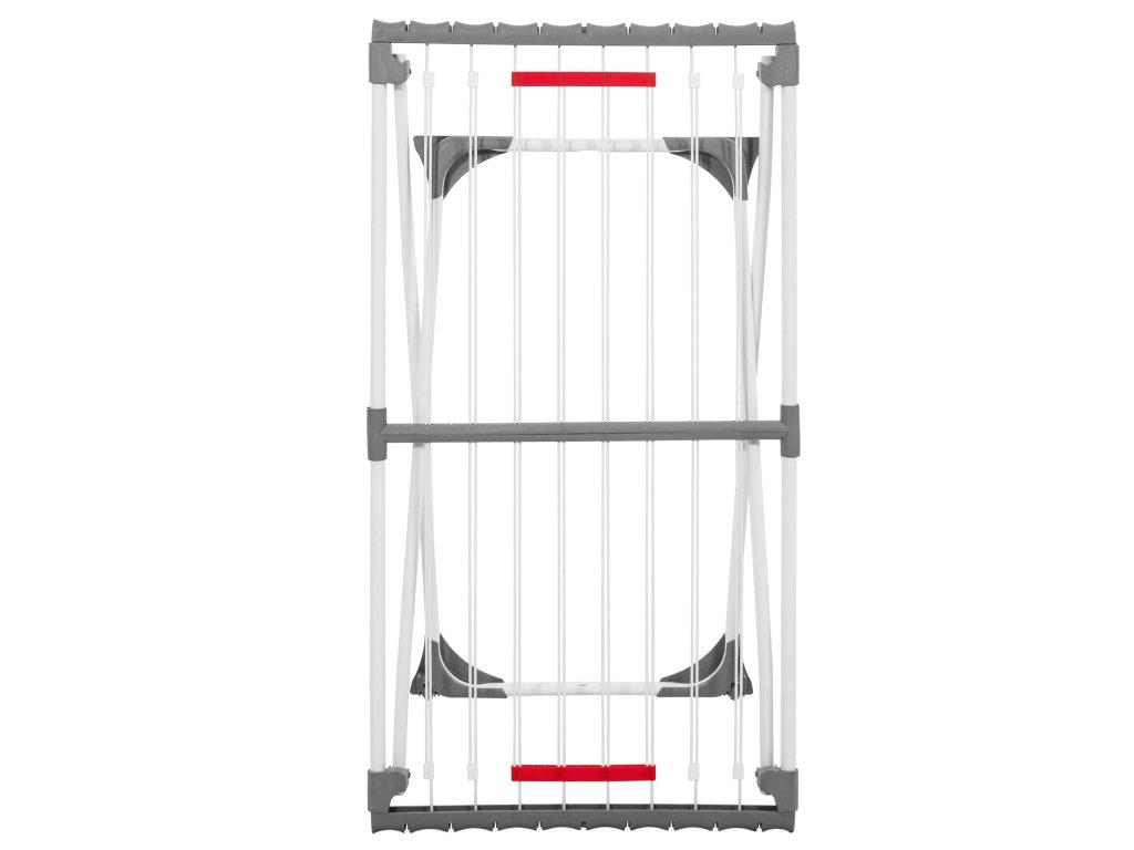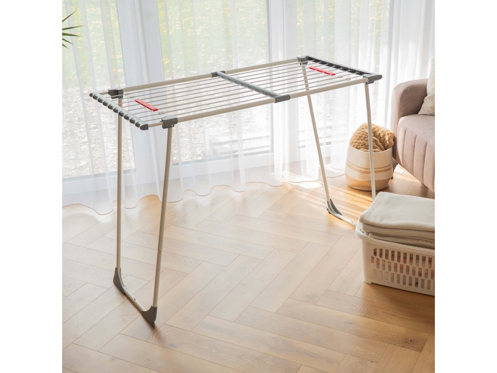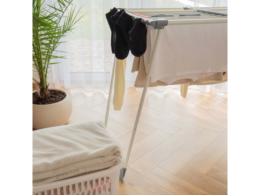 - Boční prvky konstrukce mají drážky, do kterých lze zaháknout drobné části sušeného prádla.