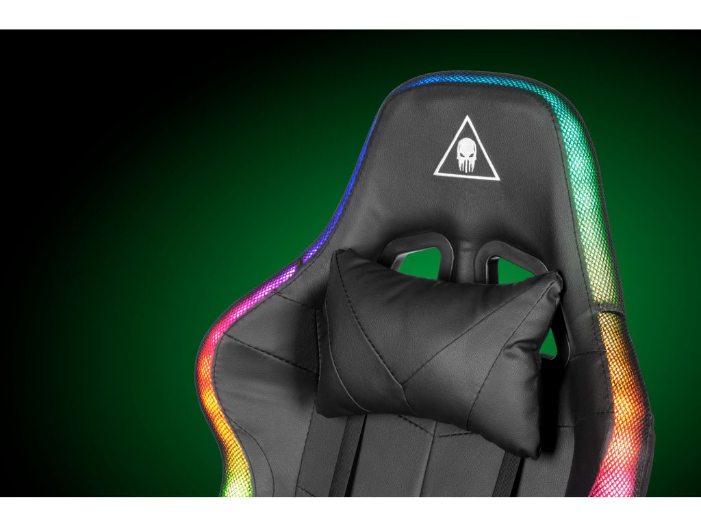 Herní židle GX-150 s efektním podsvícením promění Váš pokoj v opravdovou herní zónu. Díky více než třem stovkám padesáti režimů LED RGB máte jistotu, že si vyberete ten, který Vám nejlépe vyhovuje! A když přijde čas na něco jiného, rychle změníte barvu, rychlost a jas podsvícení přiloženým dálkovým ovladačem.